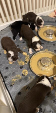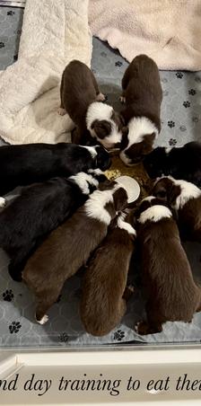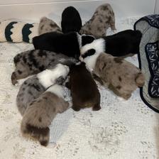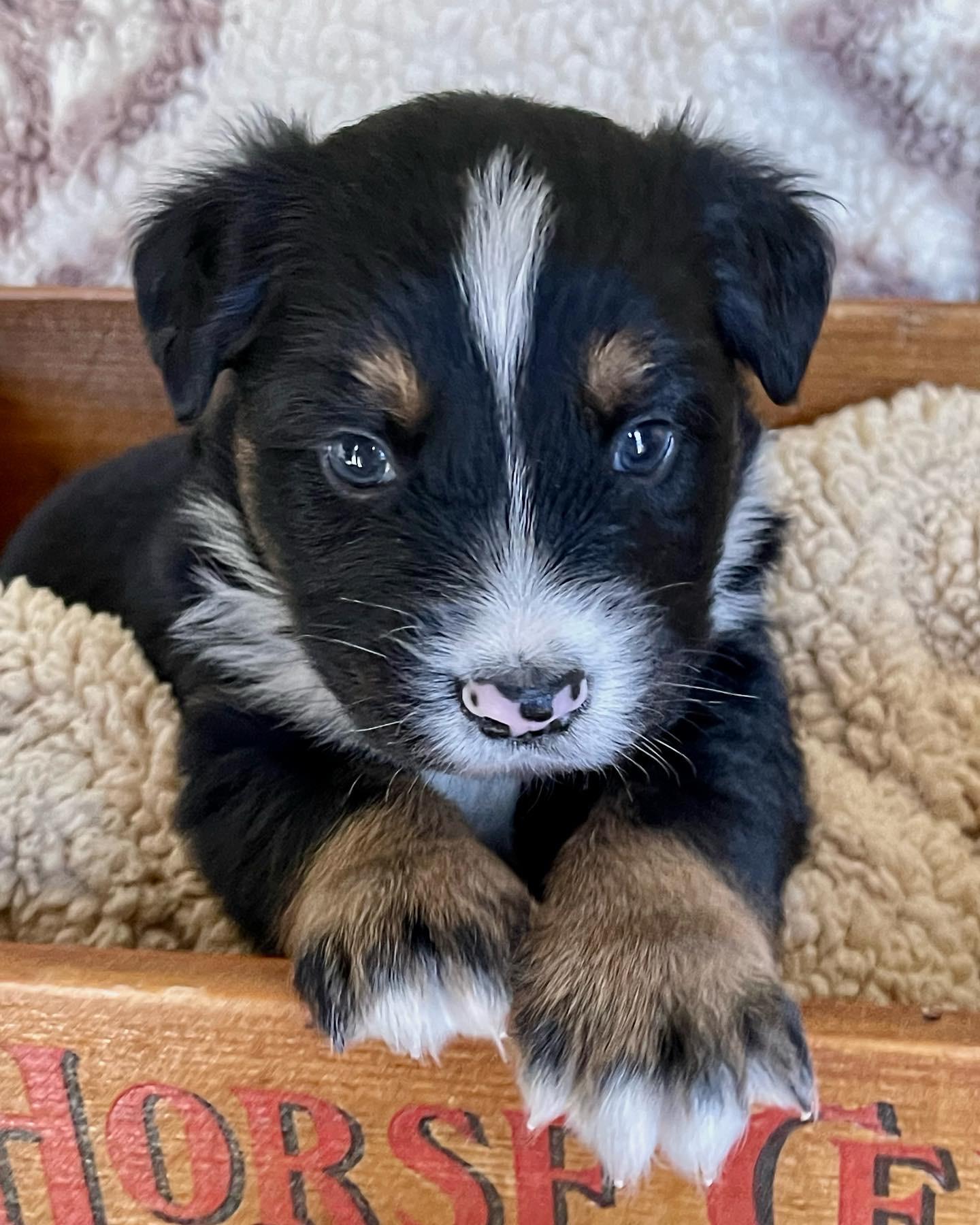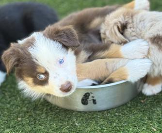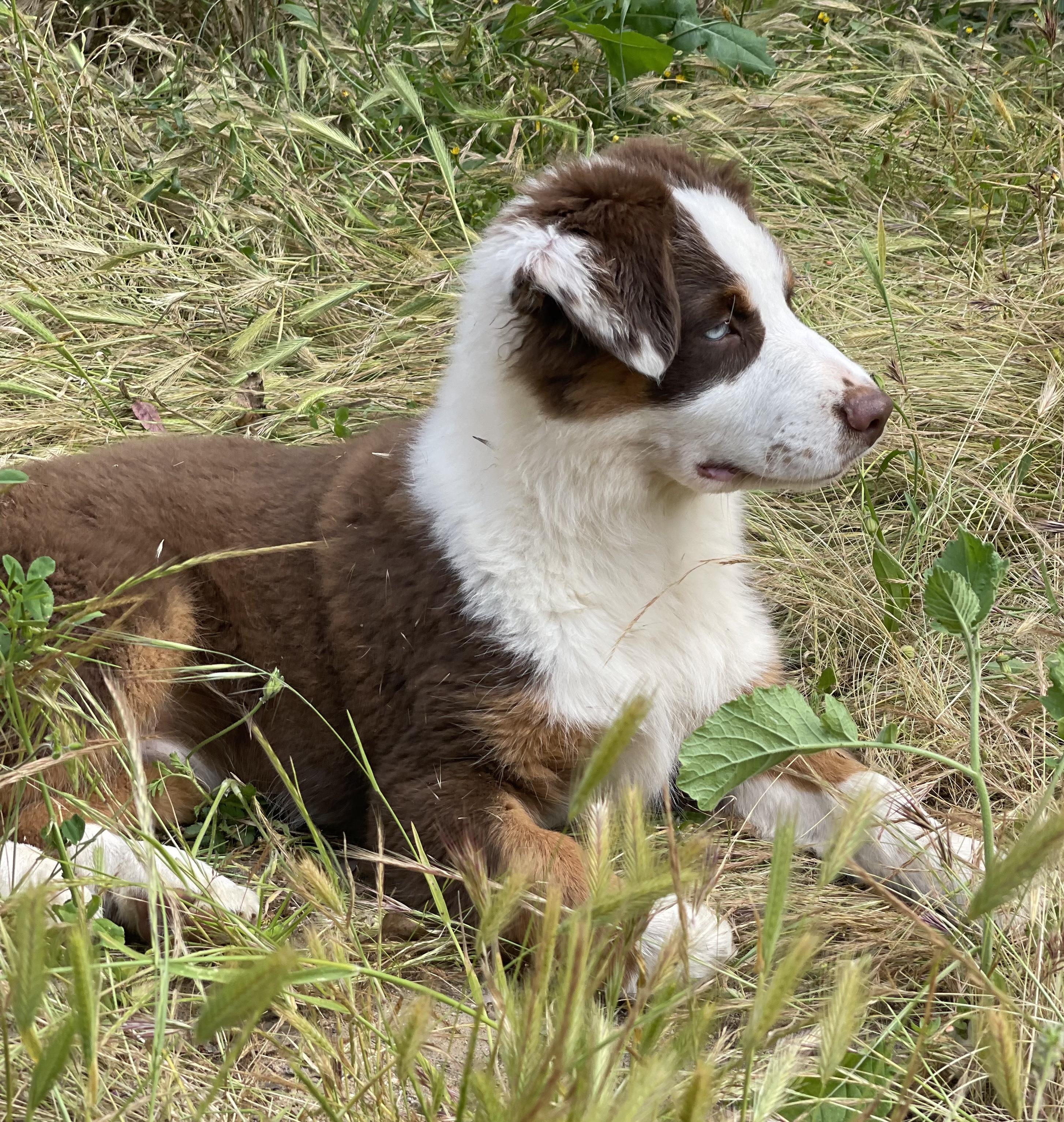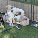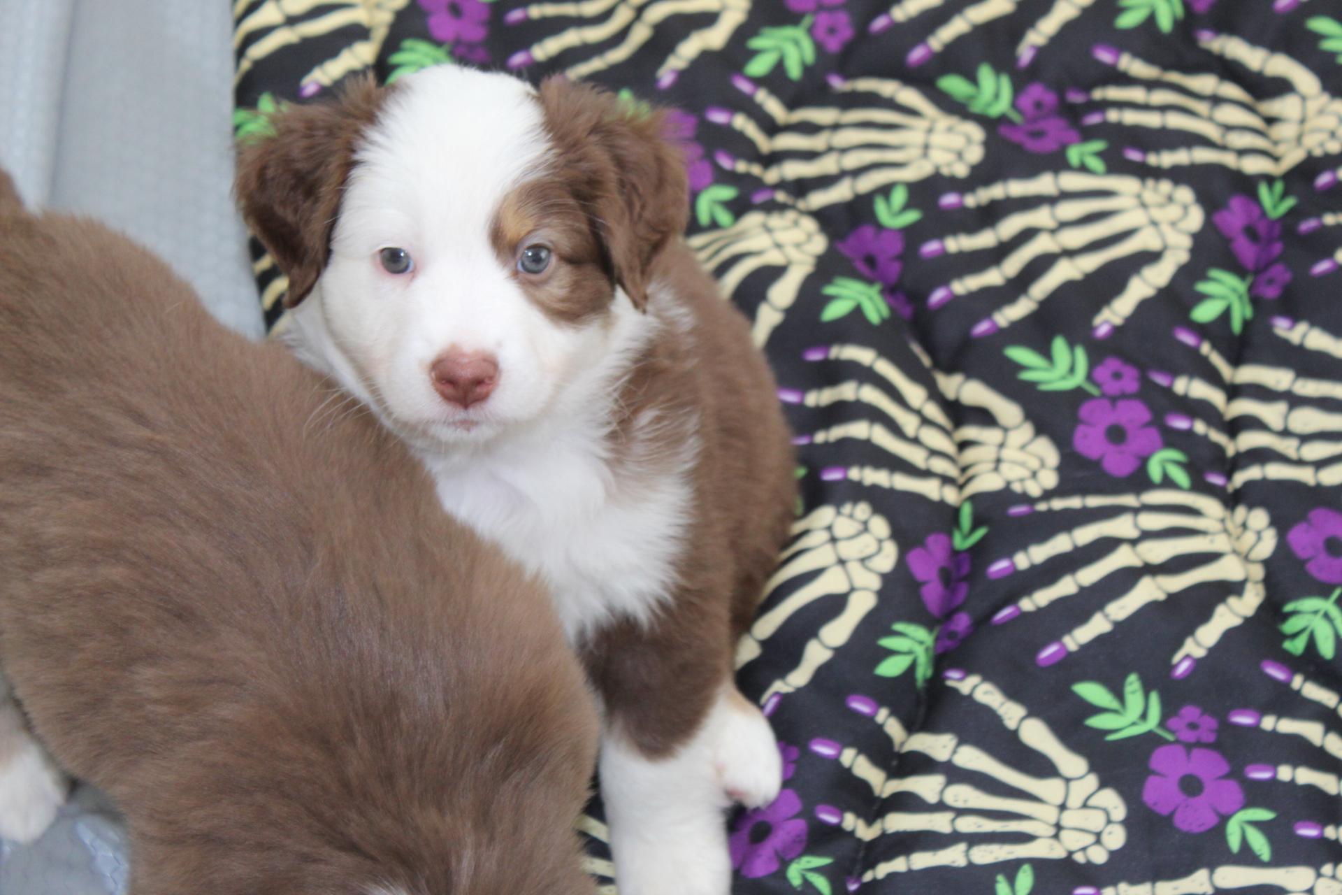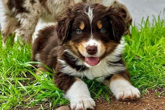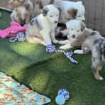 Our puppies include red merle, blue merle, black tri-color, and red tri-color. Colors will vary depending on the parent dogs.