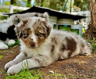 I'm Delia G., the breeder behind Blue Moon Aussies located in Ramona, CA. After serving in the Navy for 25 years I found a calling for what makes families happy. Therefore, I’ve come to a conclusion that having dogs in our lives can help in many ways especially after the pandemic. Many families that own from Blue Moon Aussies would agree that their dog has brought so much fulfillment to their their family! We raise our litters in our home to help set the foundation for happy and confident puppies to transition well into their forever homes. It’s a privilege to have the opportunity to make an impact on each individual puppy!