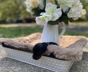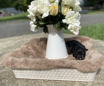 Puppy prices include a $500 non-refundable deposit and between $1,500 - $2,300 final payment, before taxes & fees.