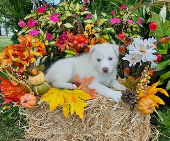 Our puppies include red and white, gray and white, black and white, and white. Colors will vary depending on the parent dogs.