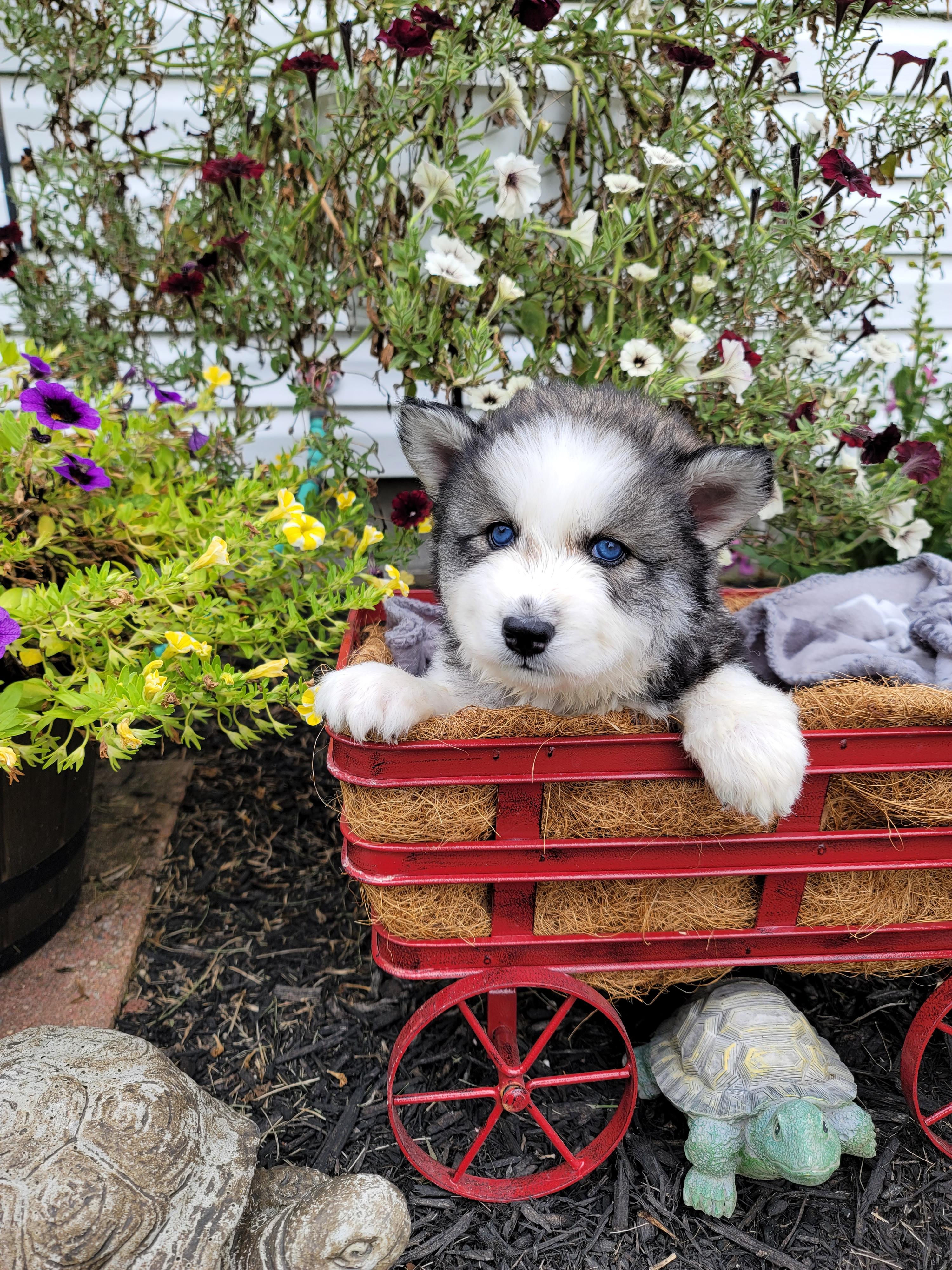 I'm Melanie C., the breeder behind Blue Moon's Huskies located in Springfield, OH. Our dogs are our beloved companions. We care deeply about this breed and are proud to be responsible Siberian Husky breeders. Our puppies are raised with love in our home, and we strive to help each one grow up with confidence so they are ready to thrive with their new families. They are affectionate, intelligent, and cute as can be! All pups come with their first set of vaccines and a complete goody bag to get you started!