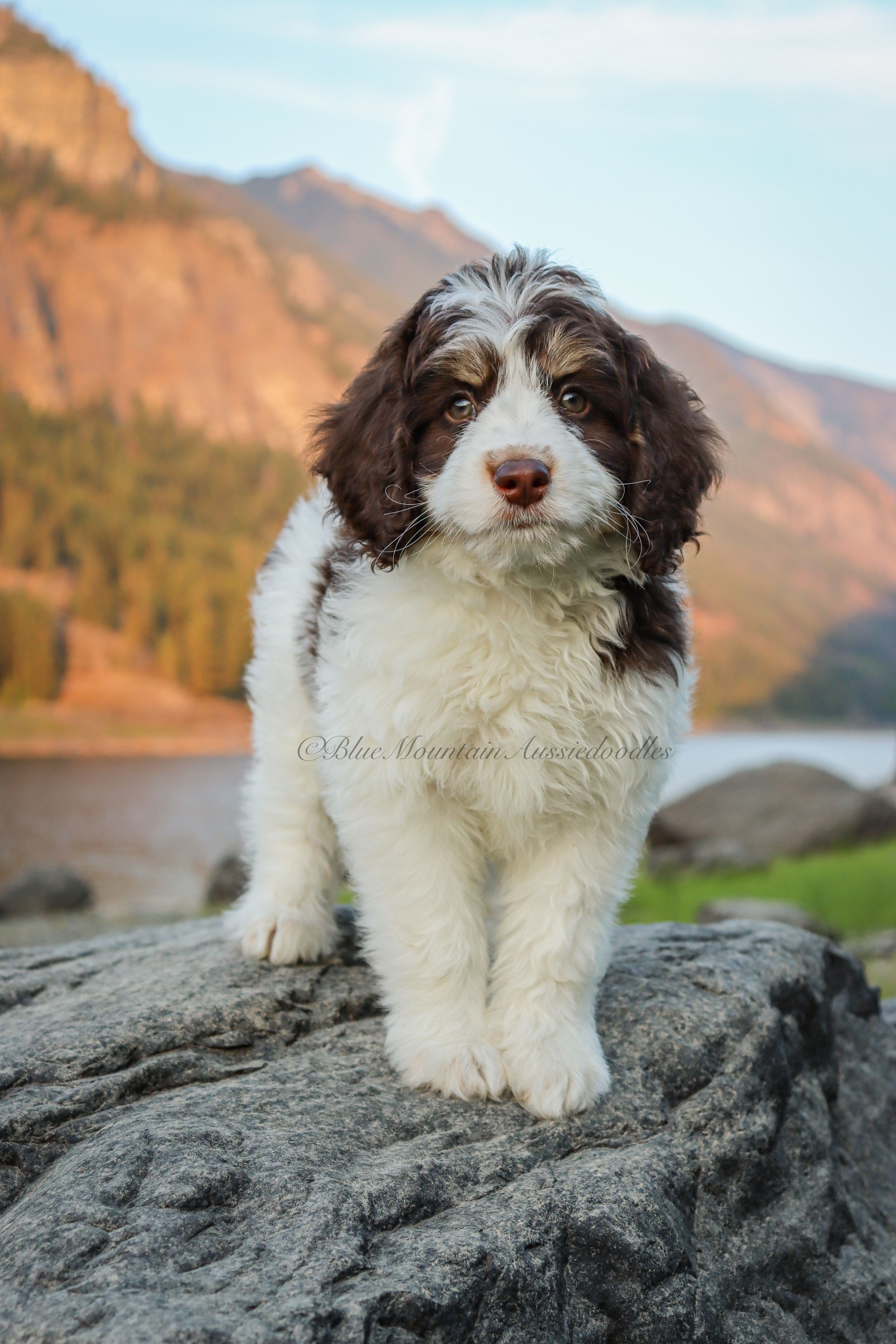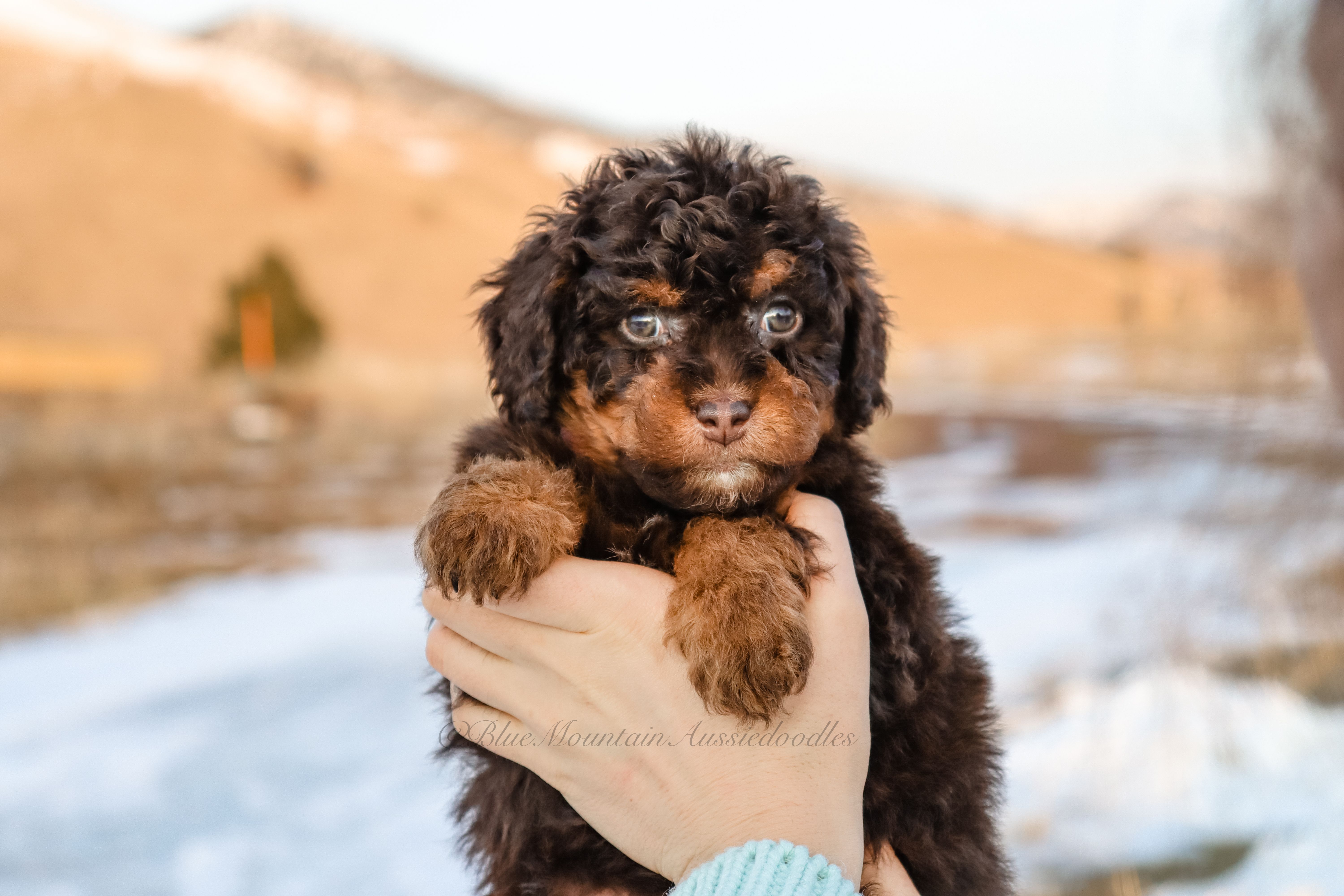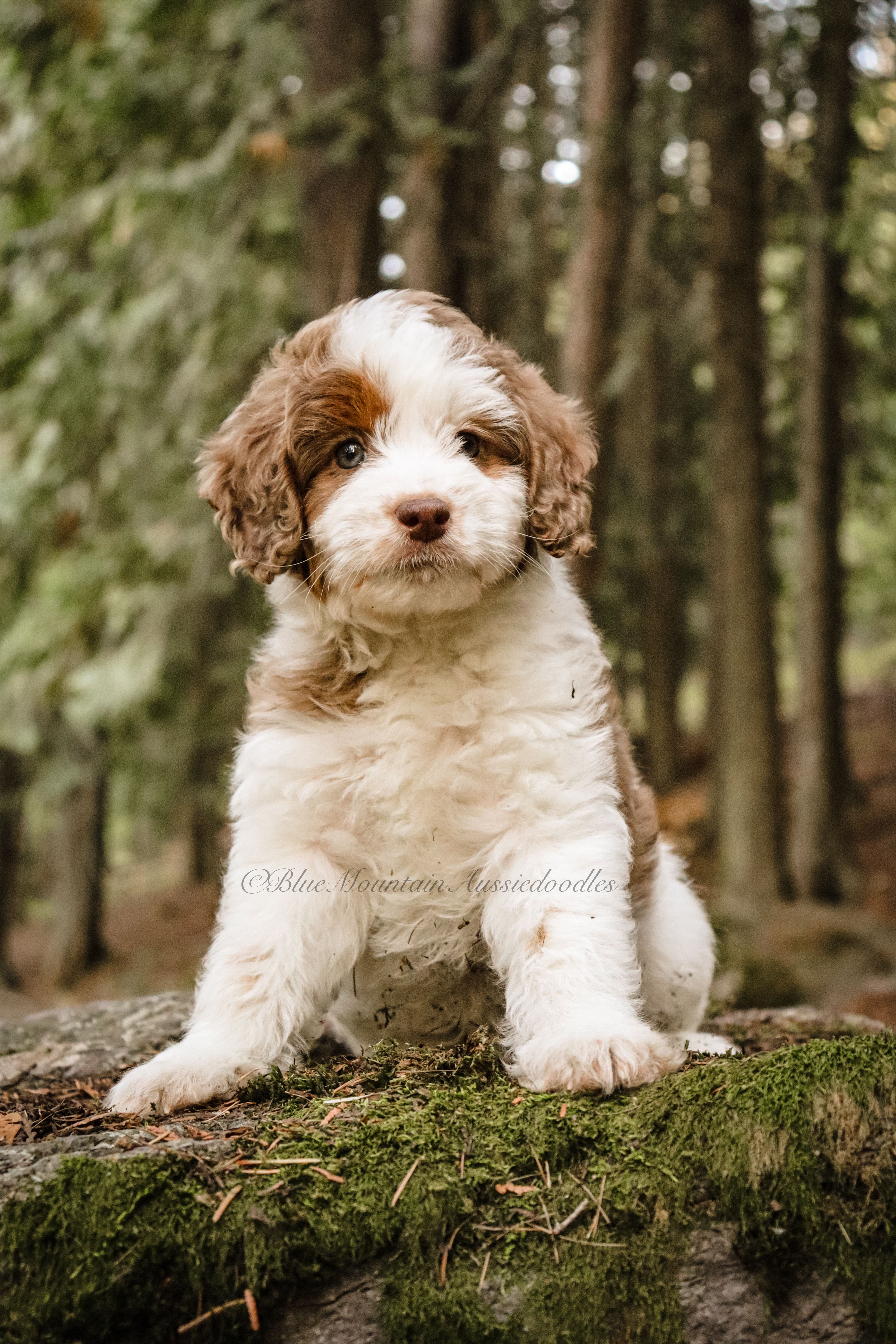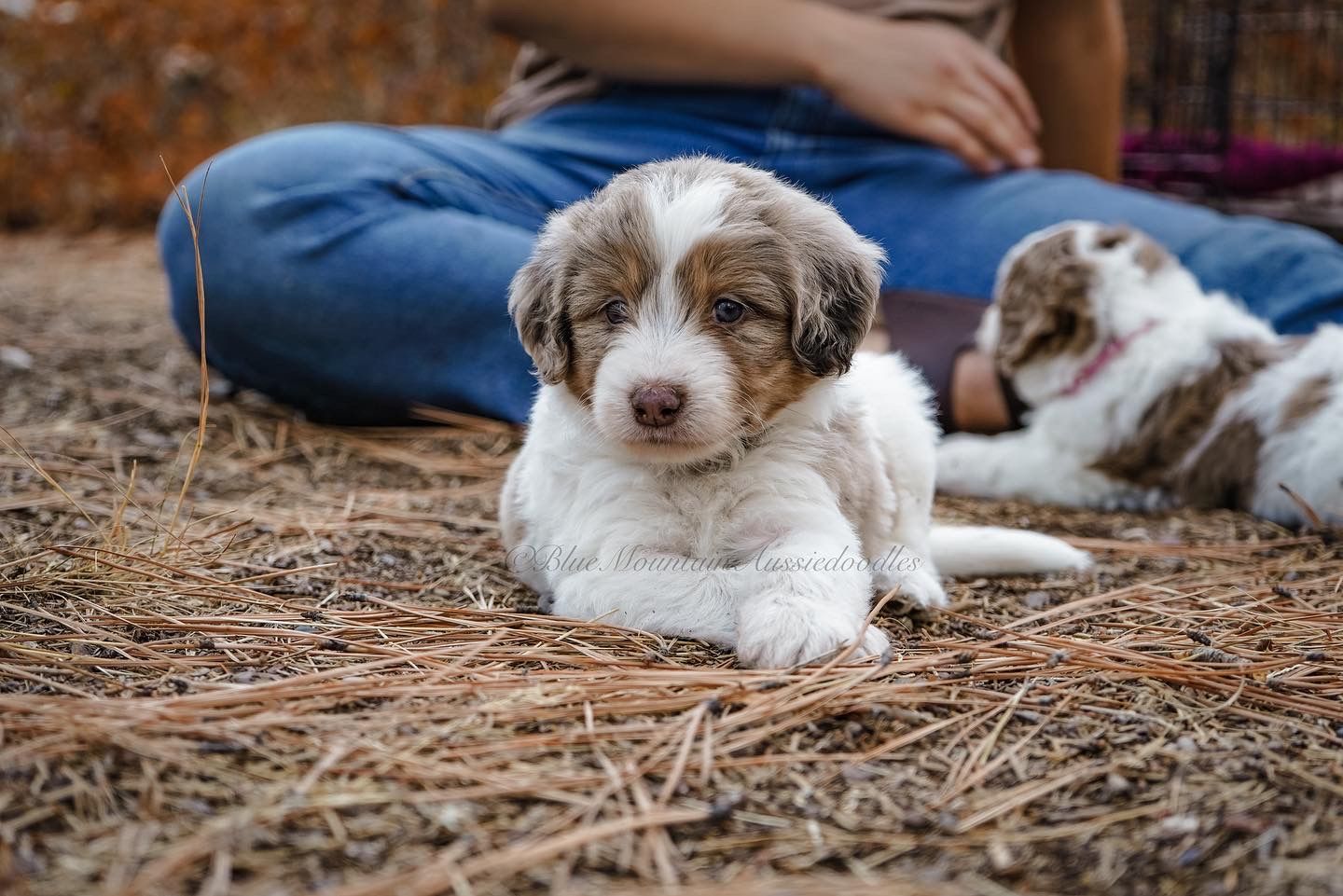 Assorted Doodle Crosses puppies include red phantom, red merle, phantom, parti, merle, and chocolate. Aussiedoodle puppies include red merle, red phantom, and red tri-color. Colors will vary depending on the parent dogs.