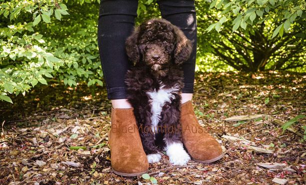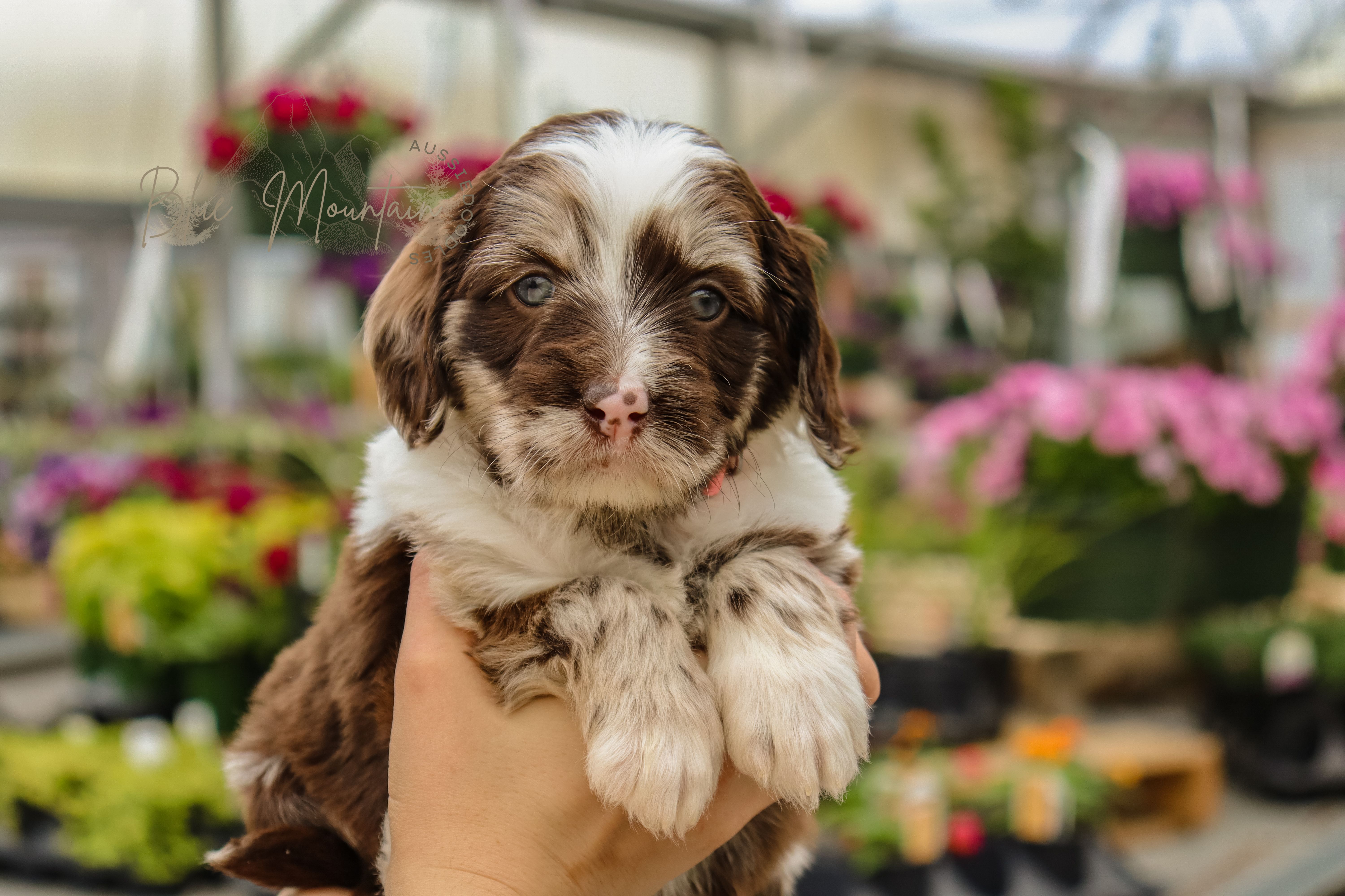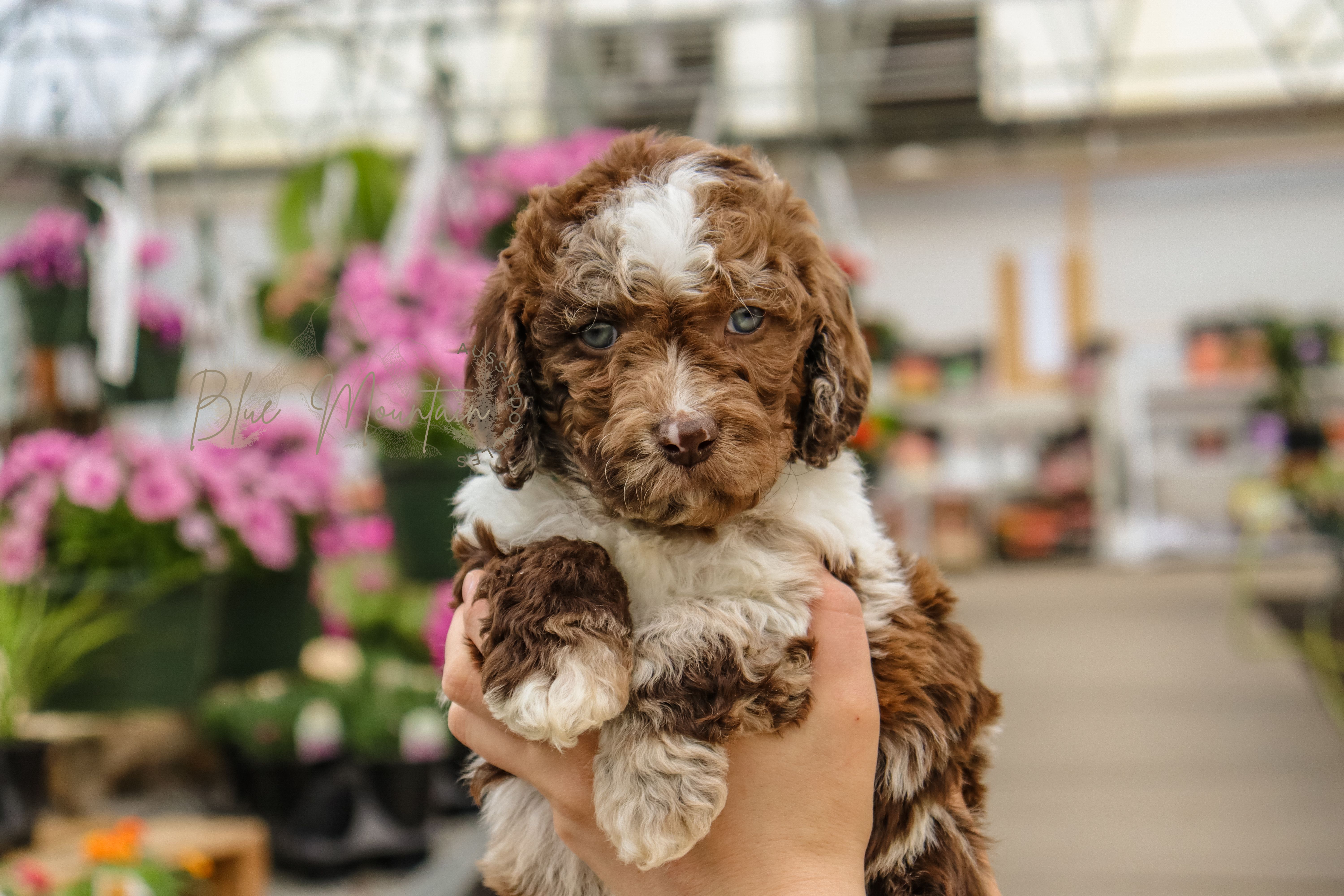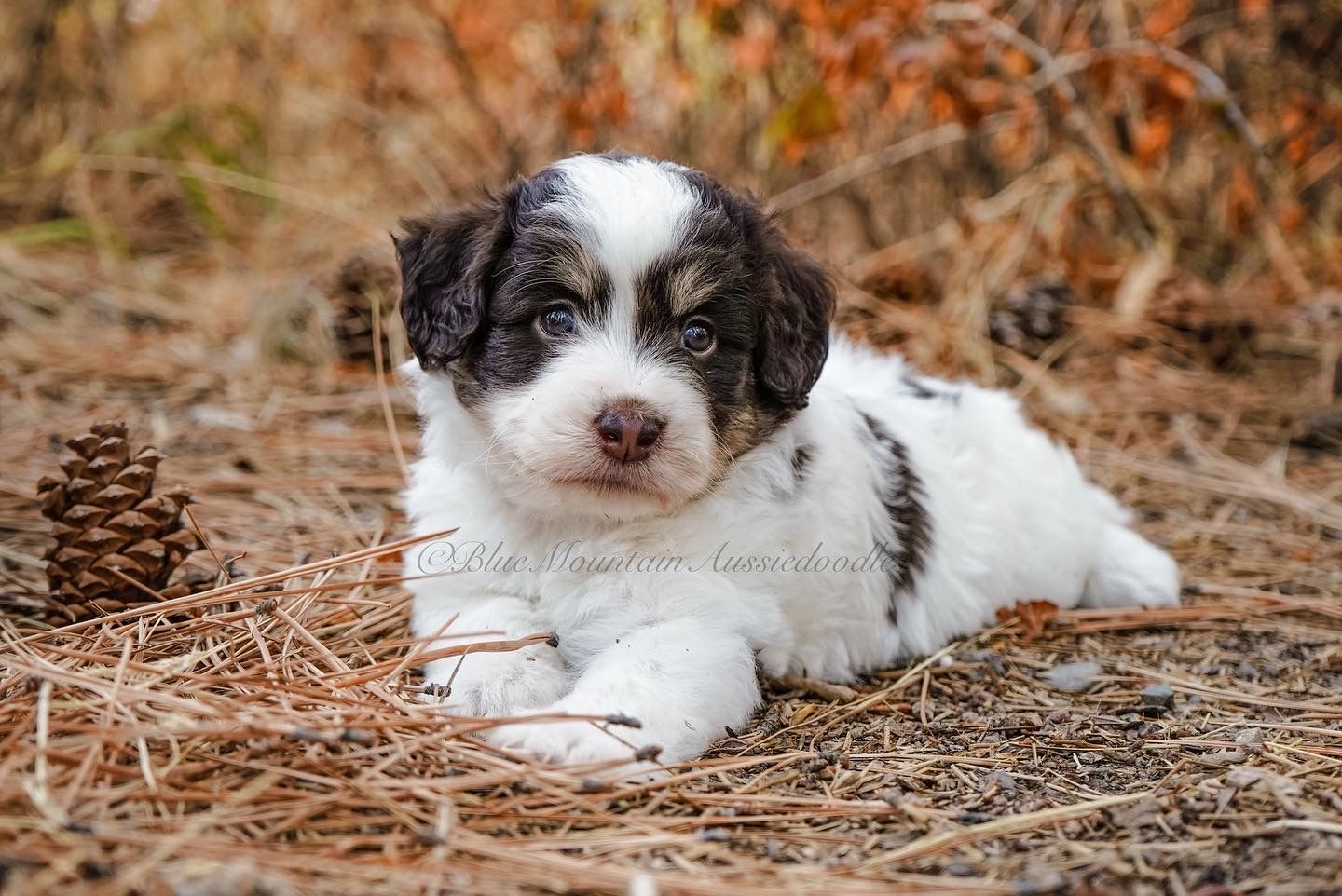 Assorted Doodle Crosses puppies include red phantom, red merle, phantom, parti, merle, and chocolate. Aussiedoodle puppies include red merle, red phantom, and red tri-color. Colors will vary depending on the parent dogs.