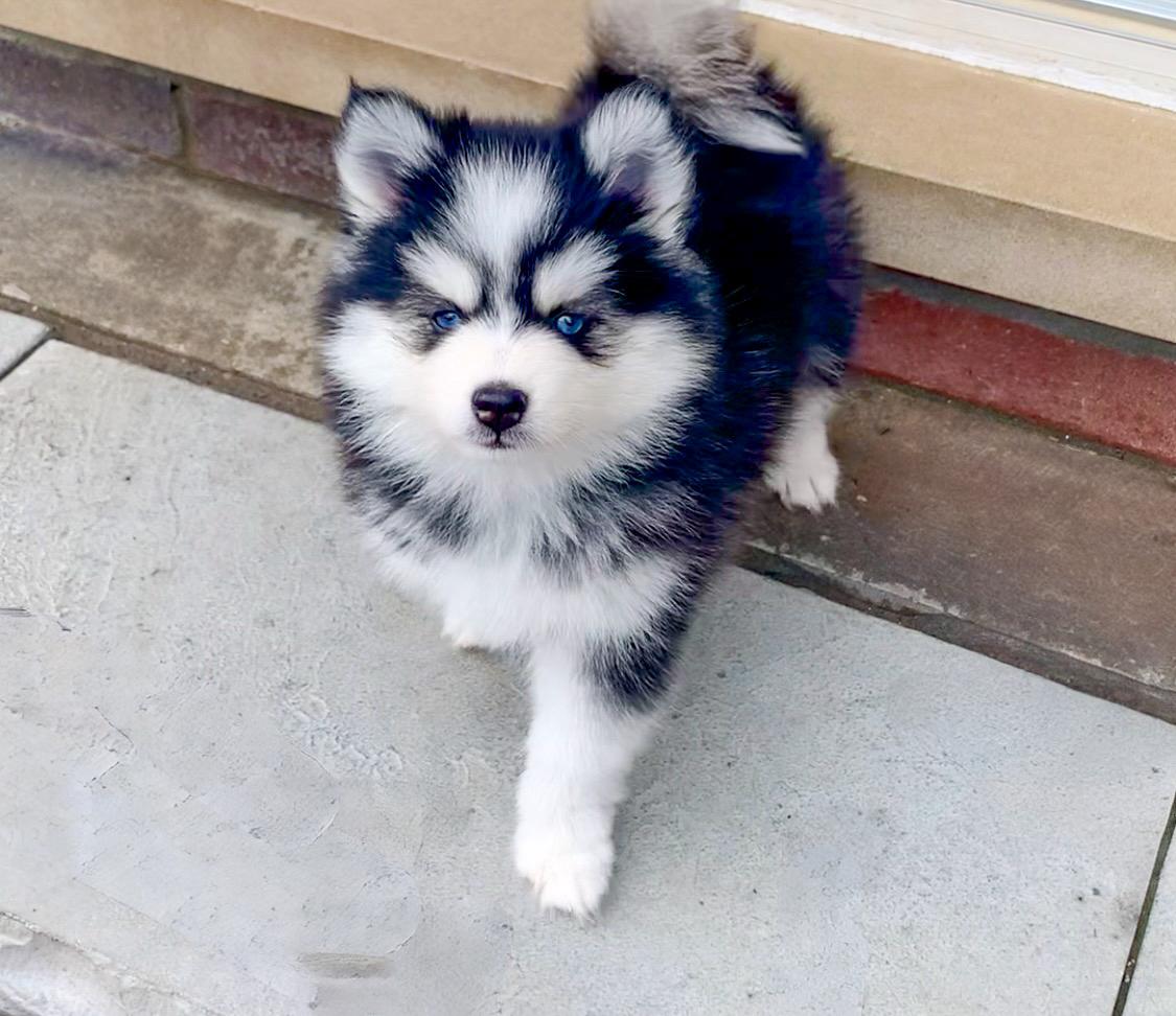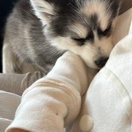 So glad I came across blue Pearl pomskies. A small and incredibly responsible breeder who has them truly as a part of the family. It really showed when we received our little stormi opal! She LOVES her humans, big and little. She is so sweet and so smart. At 11 weeks she's picking up potty training and leash training excellently. Her overall temperament is everything you want in a dog. Being in CA and blue pearl pomskies in MI, they provided the flight nanny service and everything was smooth.Alyssa was very responsive with every question I had which was super awesome. I would highly recommend anyone looking for a pomsky, to get them at blue pearl!