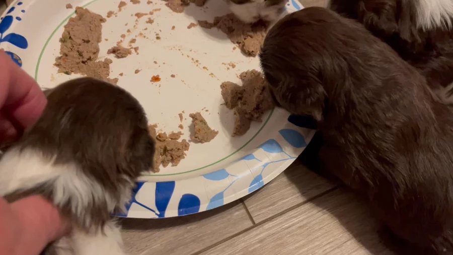Lulu’s babies eating their first real food! 🥰❤️ Ready to join their families on 9/26/25!!