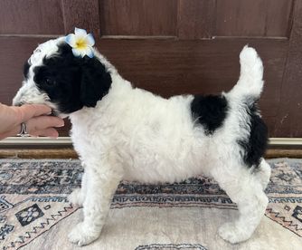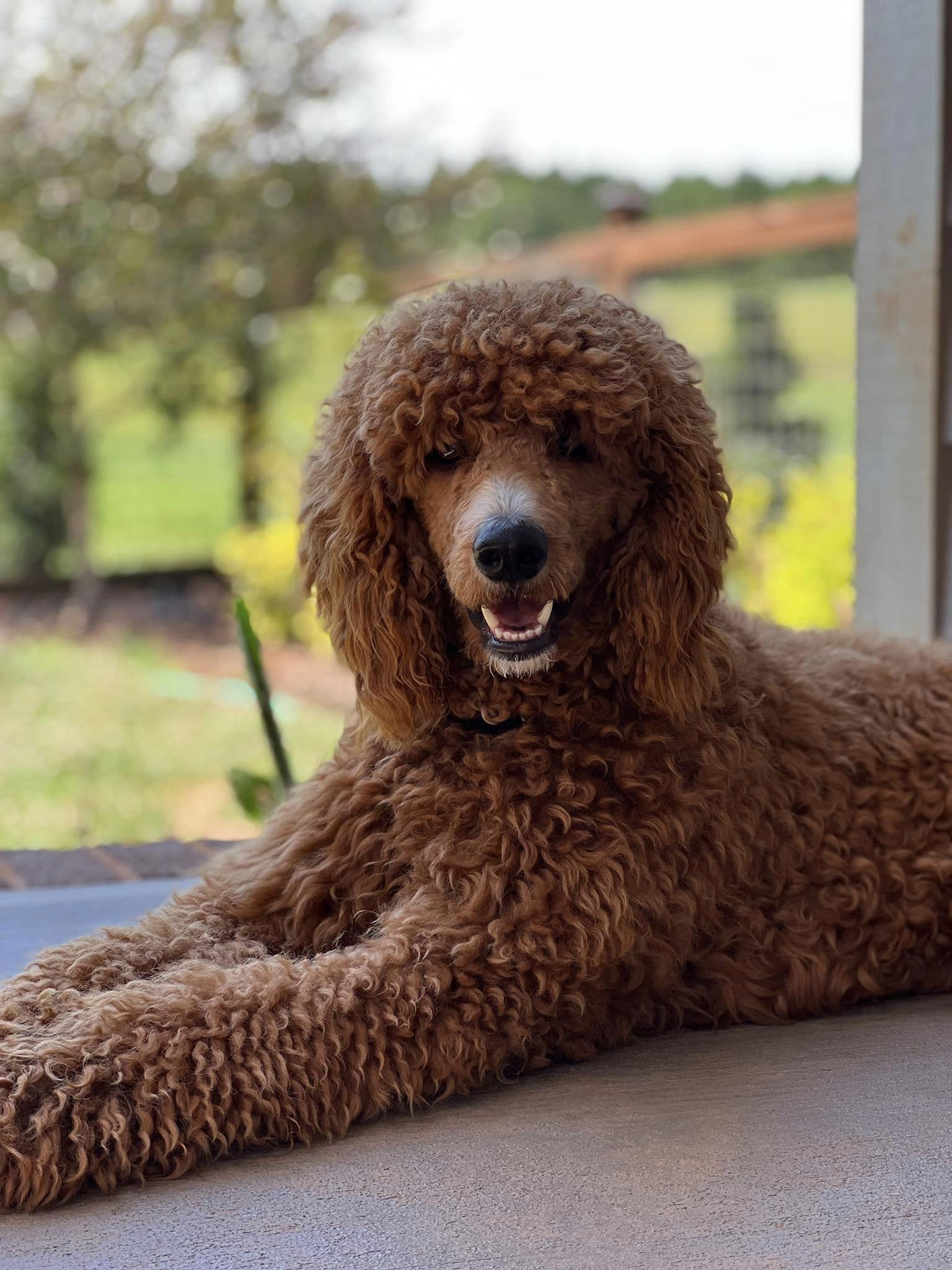 Penny has been a joy to have. She is truly a princess. She loves to play fetch and run with my kids all the time. I love her coat! It isn't super curly, which makes it easy to brush out and take care of. She is very gentle with my kids and other pets. She loves to lay on our porch with our cat.
