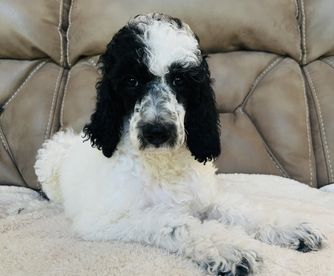 Charlie is an amazing Poodle he doesn't jump on anyone as they enter our home. He is very laid back, loves to watch TV with us at night. We have taught him many tricks! I think his favorite is closing and opening doors, which can be crazy at times, but I think it is awesome that he learned it by just watching us.
