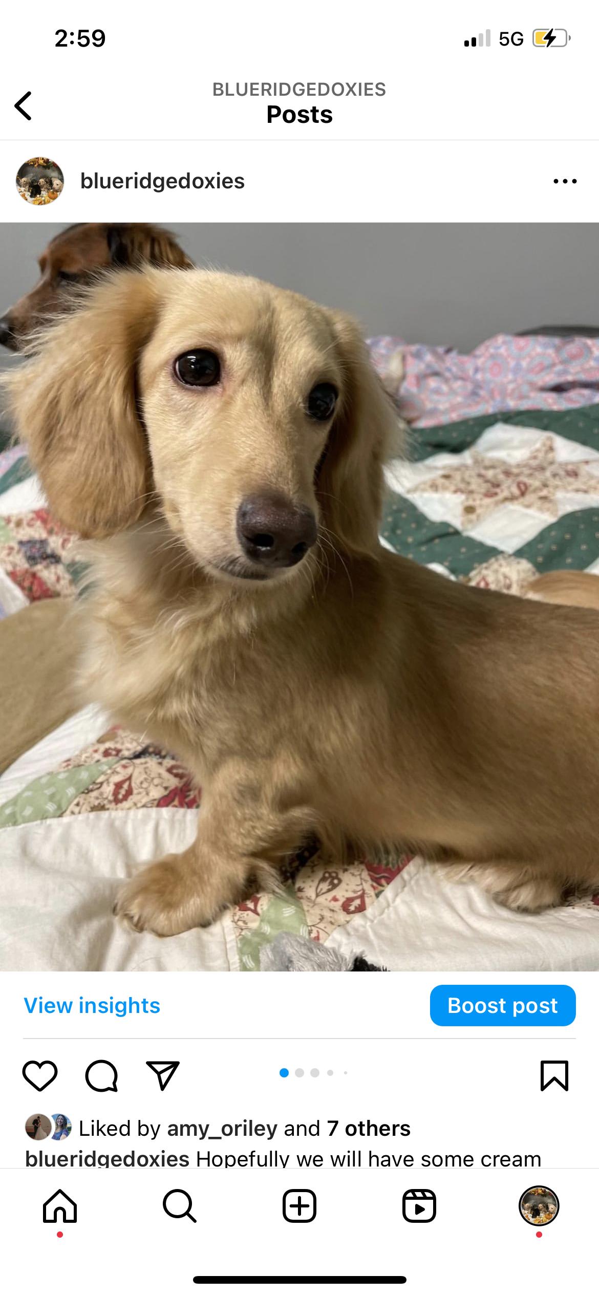 I had an exceptional experience with Lisa from Blue Ridge Doxies. Her dedication to their dogs is evident from the moment you contact her. She provided expert guidance and answered all my questions with patience and clarity. She was always quick to respond which was greatly appreciated.