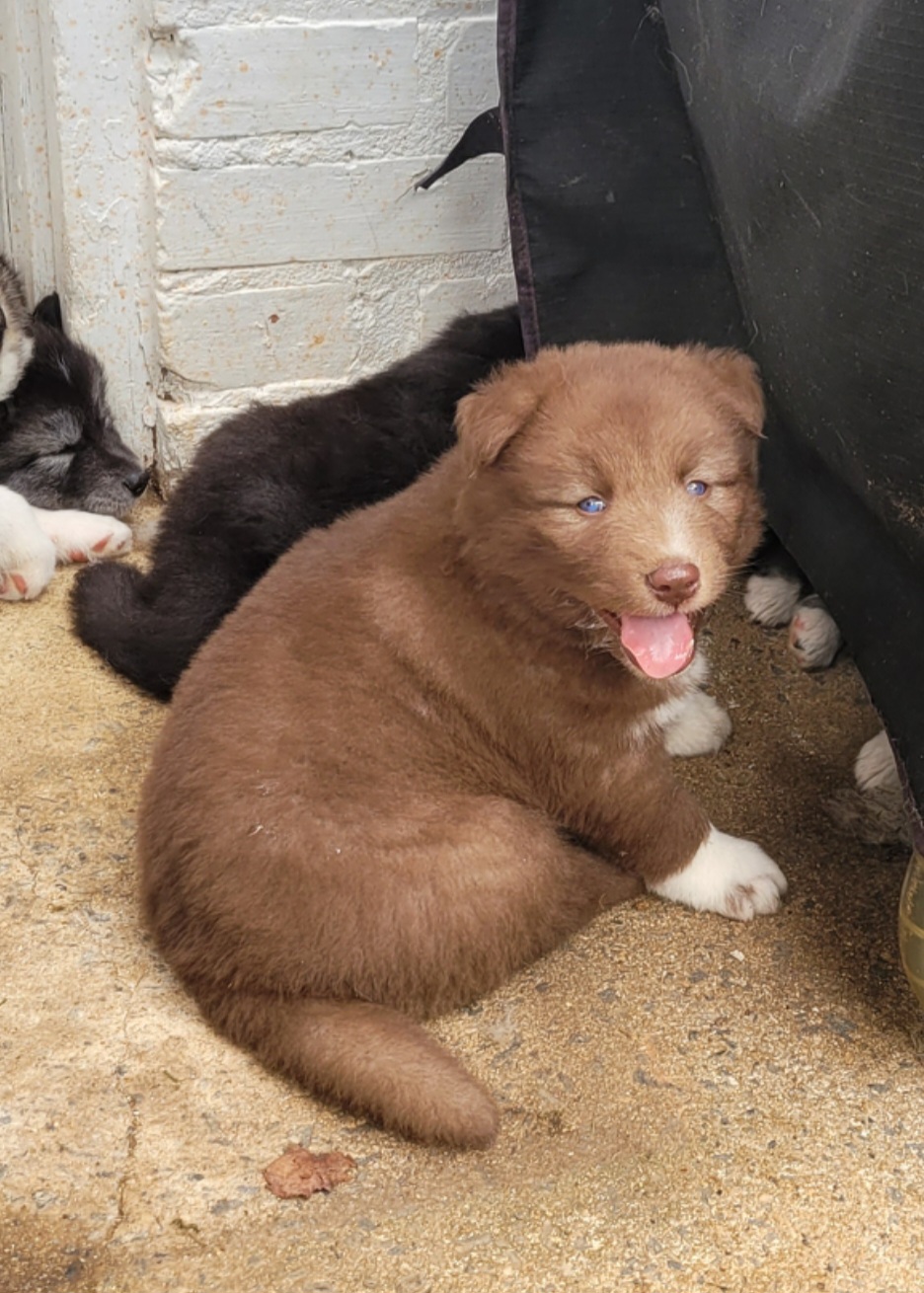 Our puppies include sable and white, gray and white, and red and white. Colors will vary depending on the parent dogs.