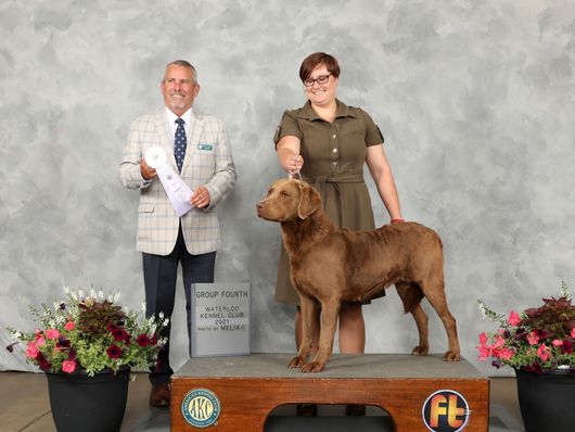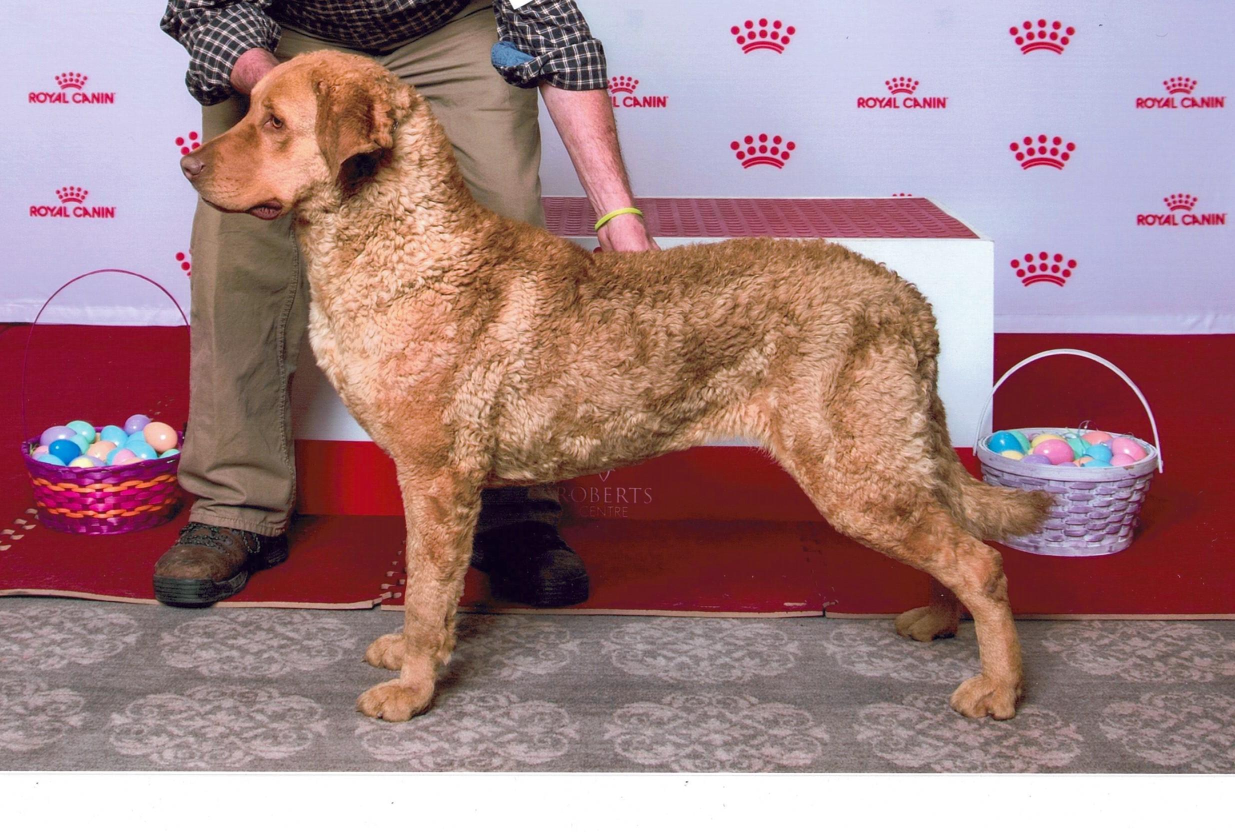 Ruby is a female Chesapeake Bay Retriever. Carefully selected as a great representative of her breed, Yvette decided to make her part of their program. Yvette has passed Good Dog’s screening process, which involved a review of their breeding practices, environment, and the mental and physical health of their dogs.