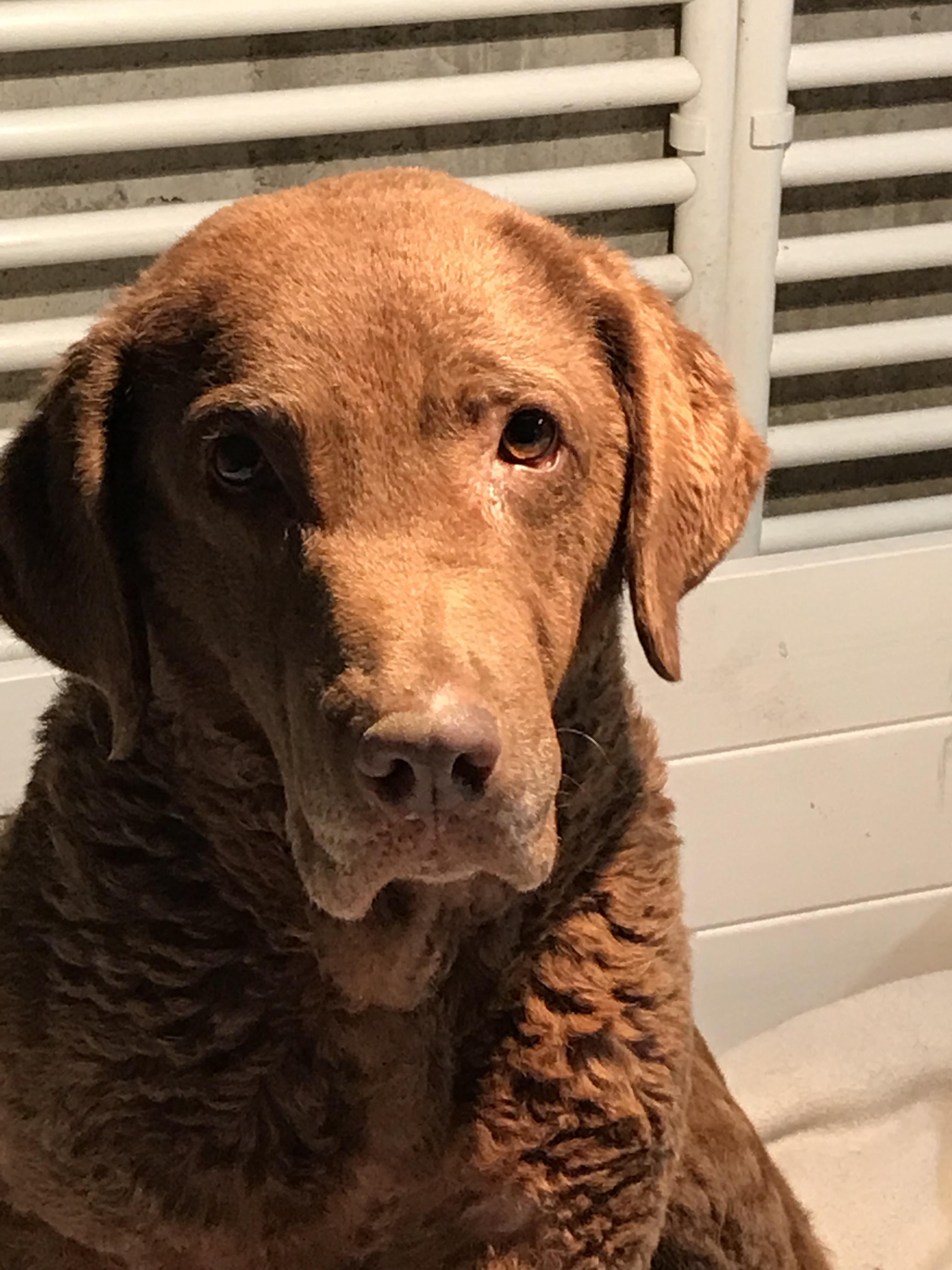 Alice is a female Chesapeake Bay Retriever. Carefully selected as a great representative of her breed, Yvette decided to make her part of their program. Yvette has passed Good Dog’s screening process, which involved a review of their breeding practices, environment, and the mental and physical health of their dogs.