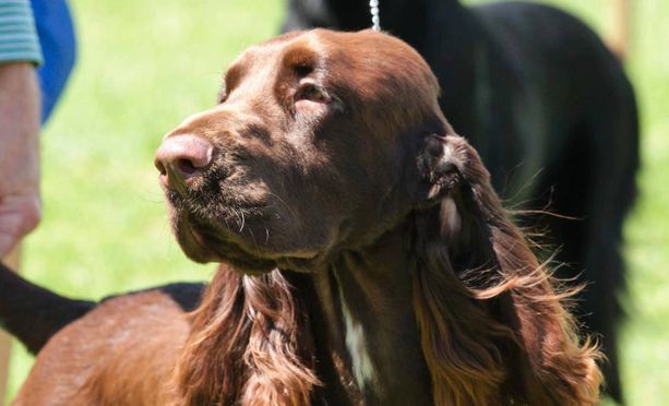 Kate is a solid liver Field Spaniel. She is a United Kennel Club and American Kennel Club Champion. Kate has never met a stranger, she loves kids and adults. All of Kate's health clearances are available on the ofa.com database.
