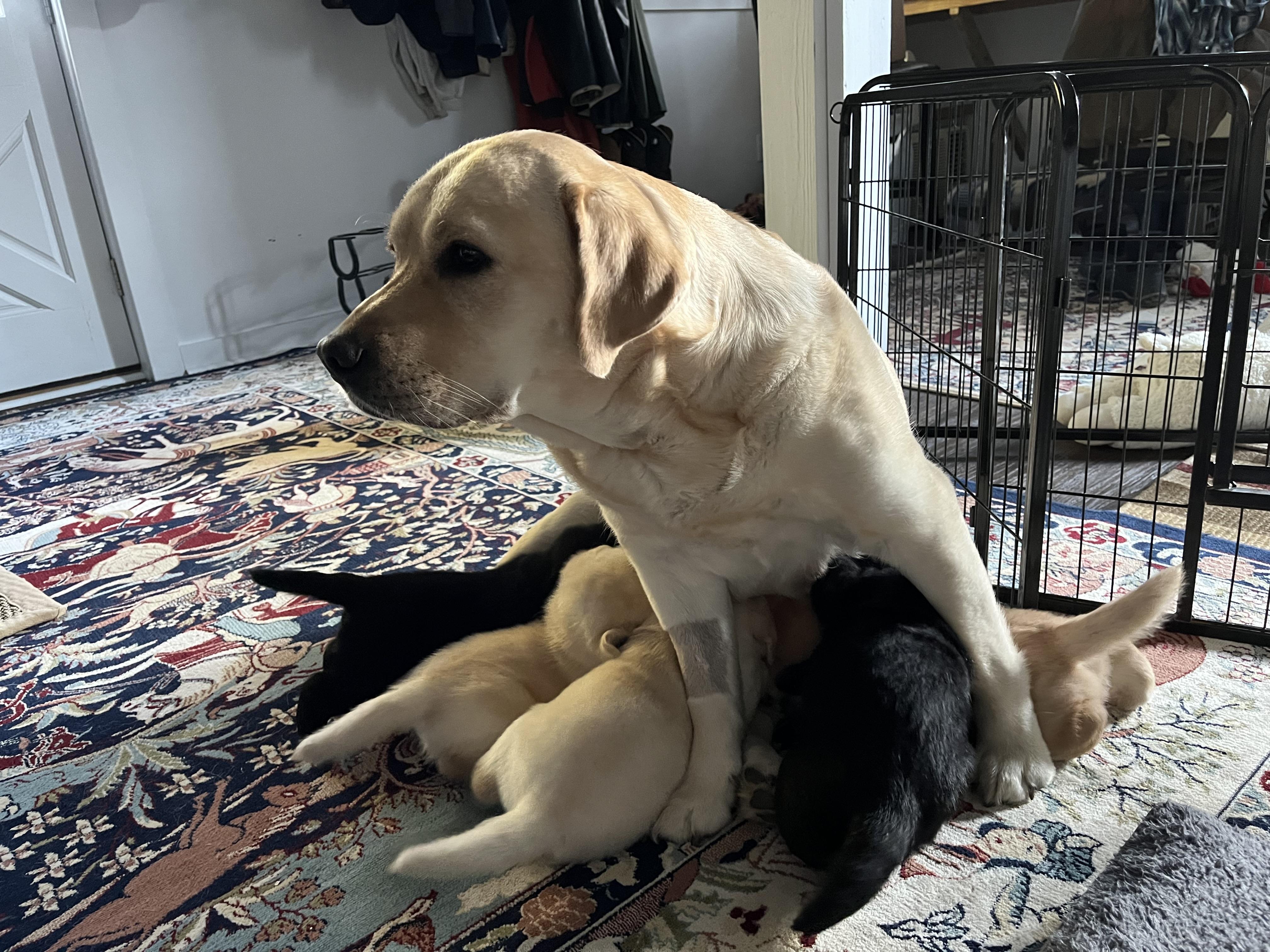 Jessica is a female Labrador Retriever. Carefully selected as a great representative of her breed, Wendy decided to make her part of their program. Wendy has passed Good Dog’s screening process, which involved a review of their breeding practices, environment, and the mental and physical health of their dogs.