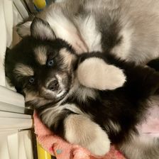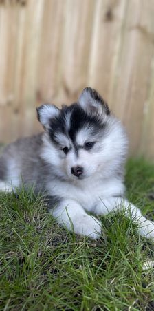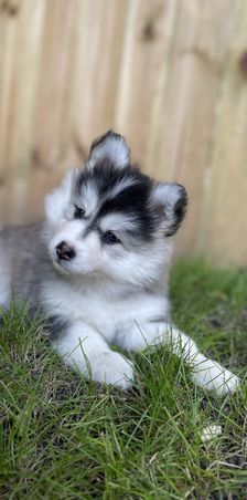 I'm Brittney B., the breeder behind Blue Sky Pomsky located in Blue Earth, MN. All of our dogs are loved as family members. We cherish our puppies from birth up until they leave our arms to snuggle into yours! We raise our dogs in our home right alongside our family. We love being able to match our puppies with families that are the perfect fit for their personalities.