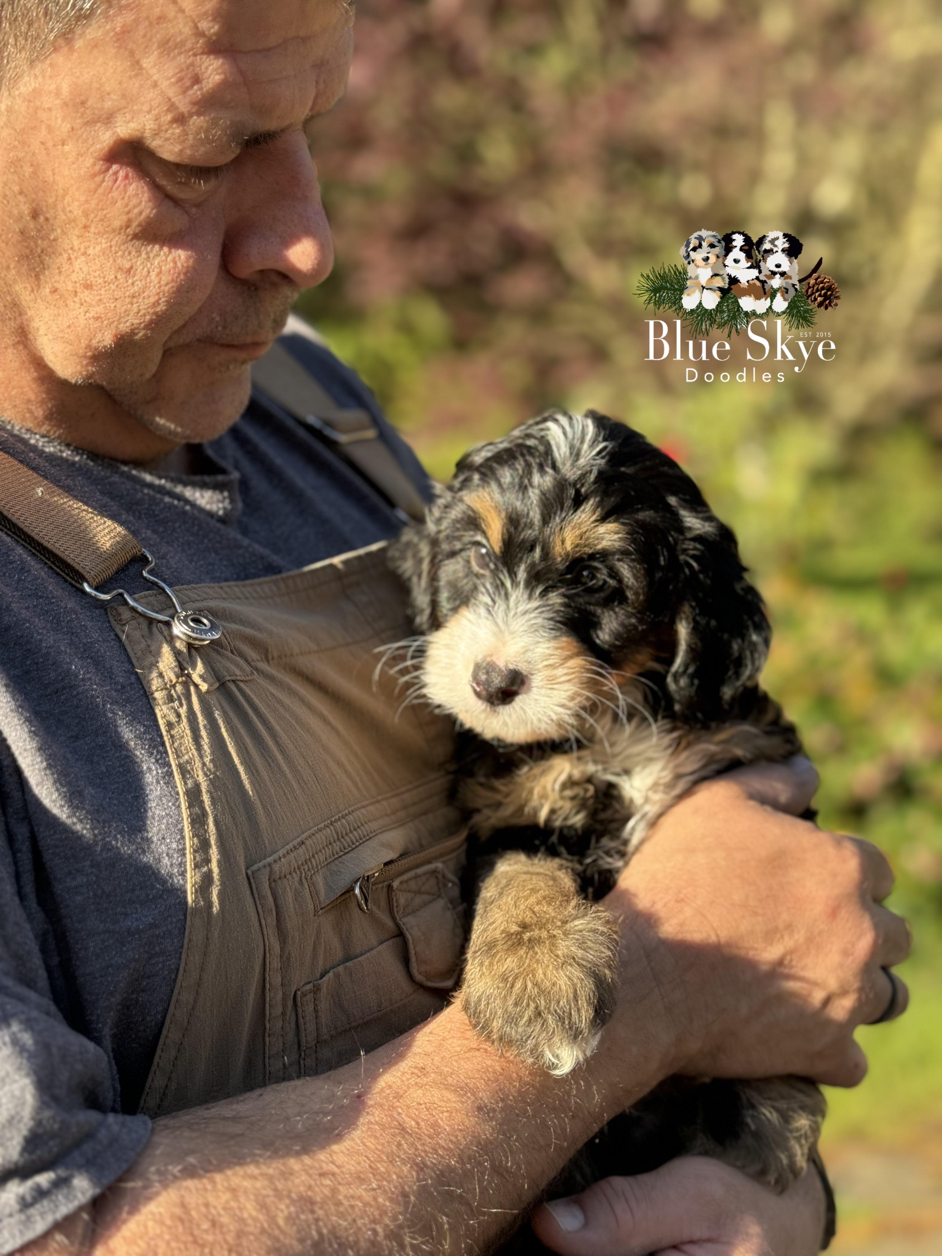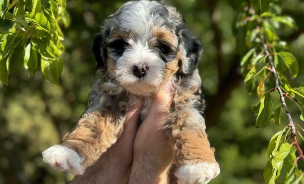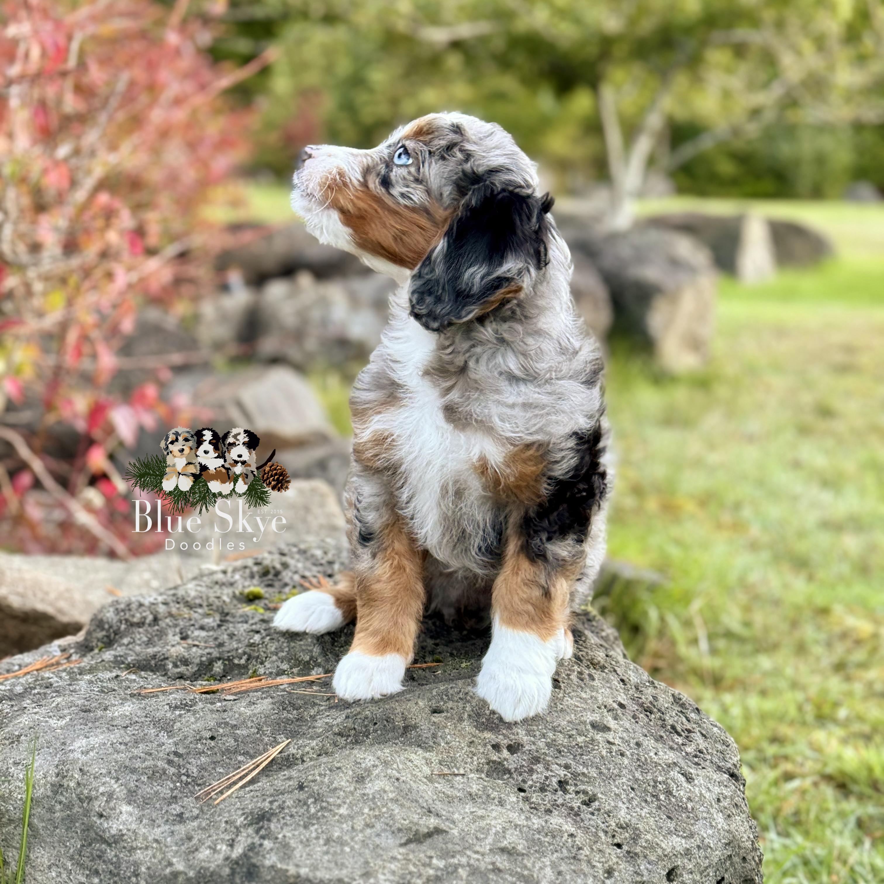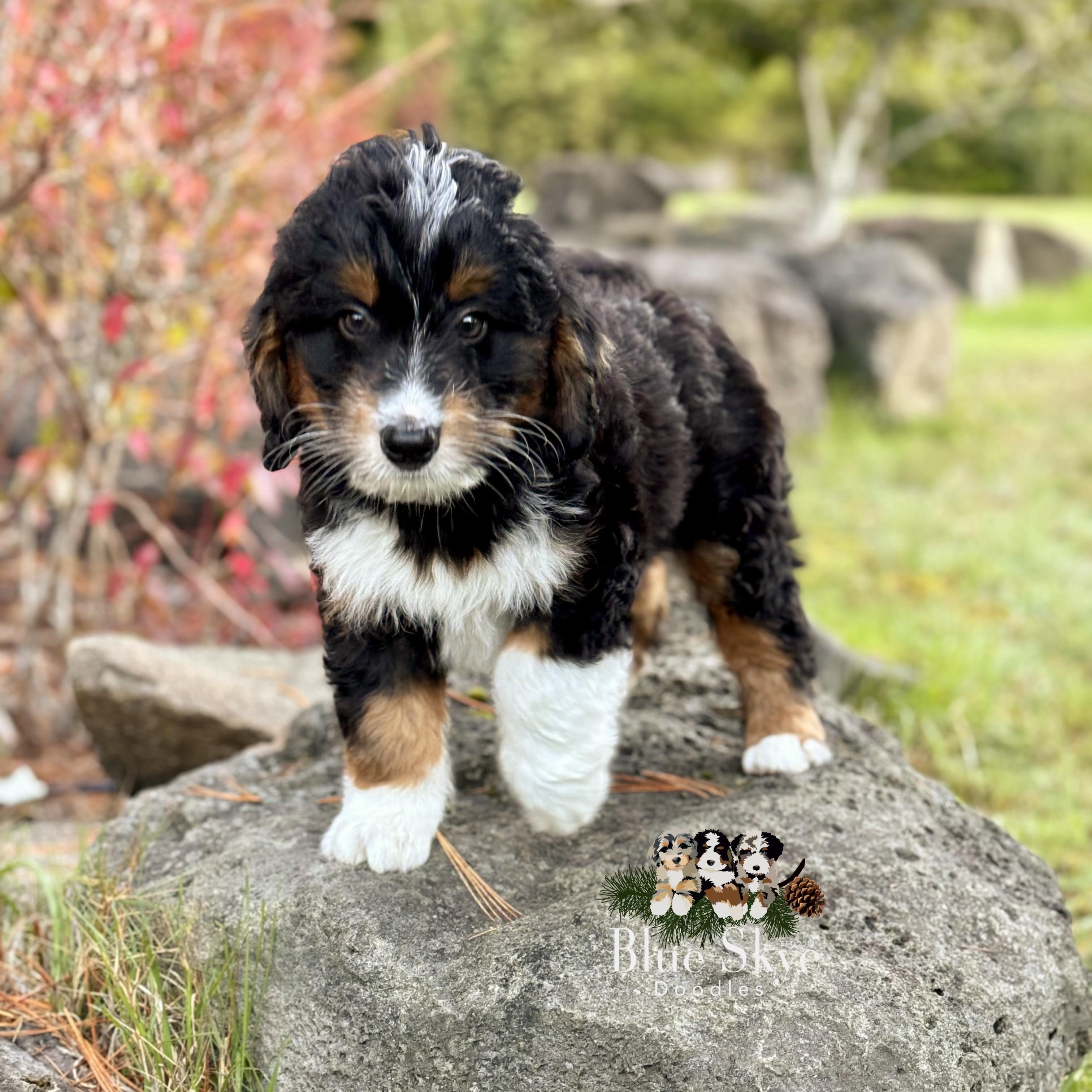 I'm Karin, the breeder behind Blue Skye Doodles located in Oregon. Responsibly raising Bernedoodles and Australian Mountain Doodles (aka Aussie Bernedoodles) since 2015. We aren’t just raising puppies, we are raising your new family member. We raise all puppies in our home with ENS and Puppy Culture protocols and prioritize the health, temperament and happiness of the parents and puppies.
