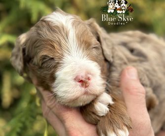 We are so in love with our new puppy! Blue Skye Doodles was great to work with. They were responsive and kind. You can easily see how much they love their dogs, and want the best for the puppies born to them. We even told a friend about them, and they brought home a new puppy from Blue Skye a few weeks later. ❤️