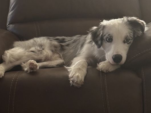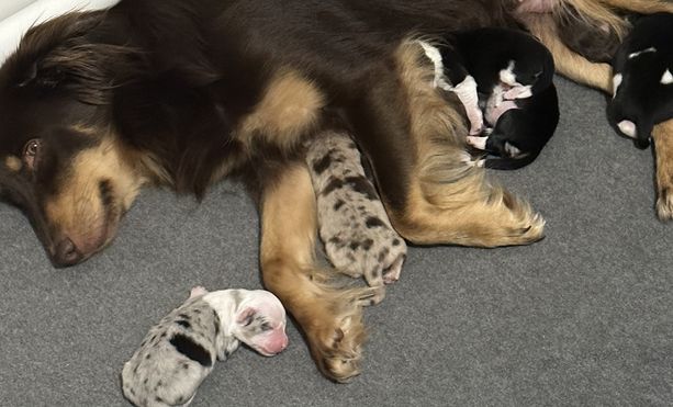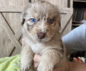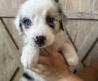 Our puppies include red & white, red merle, blue merle, and black tri-color. Colors will vary depending on the parent dogs.