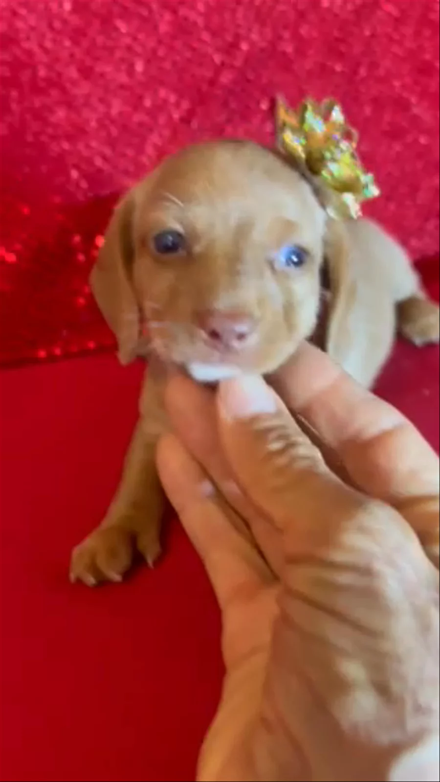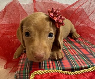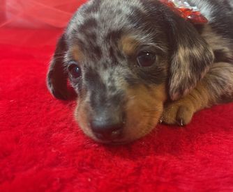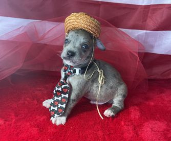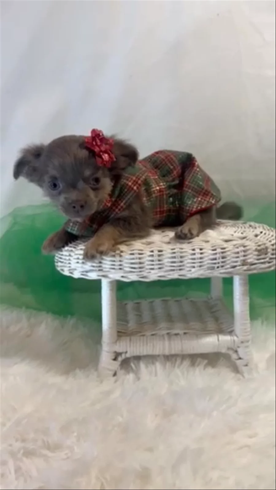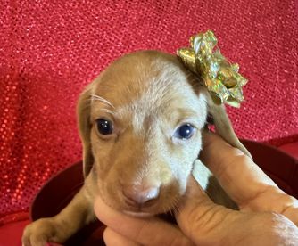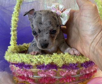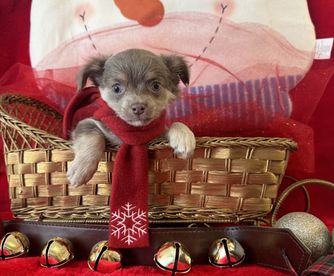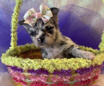 Our Chihuahua puppies include blue, blue fawn, gold and white, fawn and white, cream and white, blue merle, blue and white, blue and tan, and black and white. Dachshund puppies include cream, red, fawn (isabella), blue and tan, chocolate and cream, fawn (isabella) and tan, chocolate and tan, black and tan, and dapple. Colors will vary depending on the parent dogs.