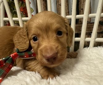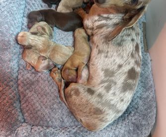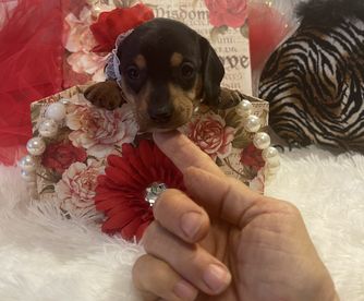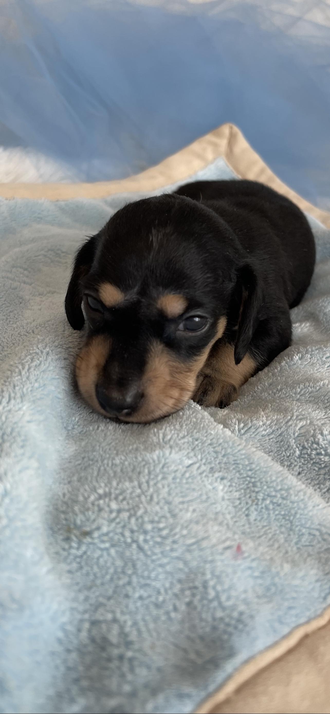 Dachshund puppies are miniature size. Sizes will vary depending on the parent dogs.