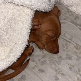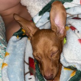 Raaya is a female Dachshund about 4 years old. Carefully selected as a great representative of her breed, Jean decided to make her part of their program. Jean has passed Good Dog’s screening process, which involved a review of their breeding practices, environment, and the mental and physical health of their dogs.