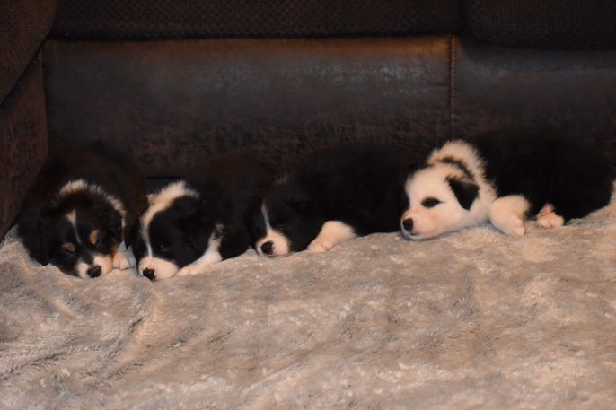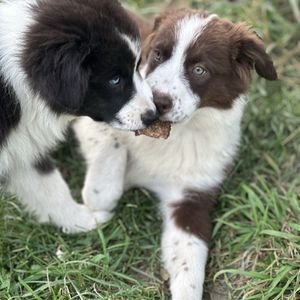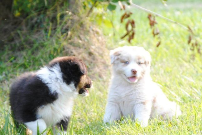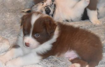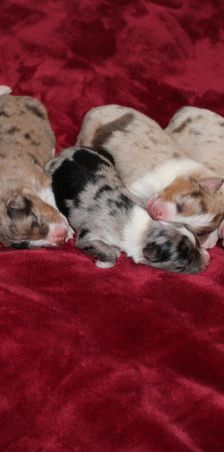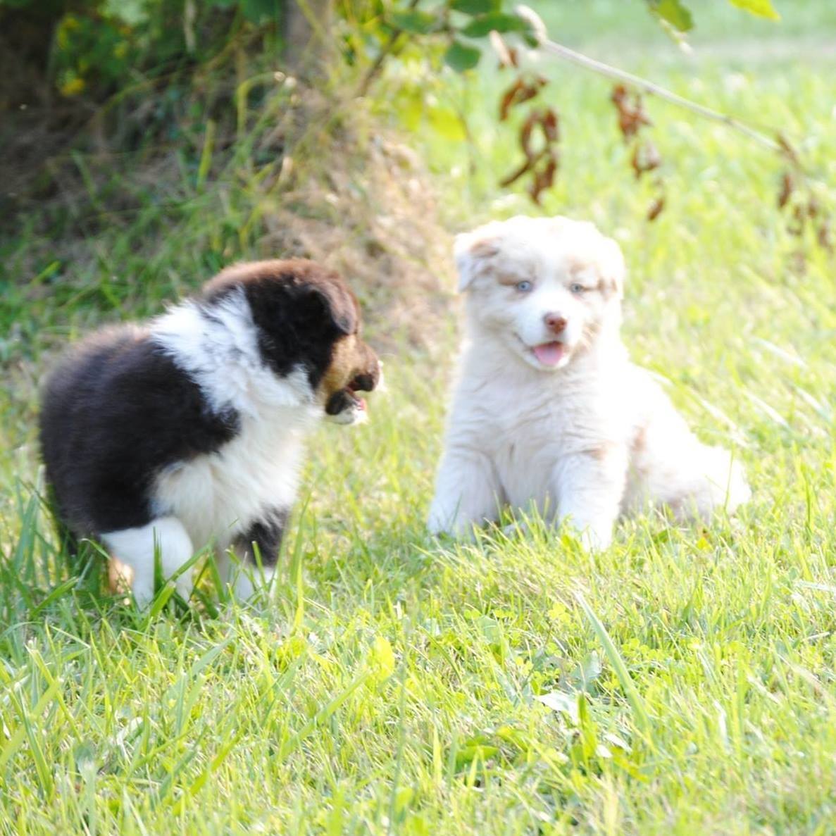 Our puppies include black, blue merle, and red. Colors will vary depending on the parent dogs.