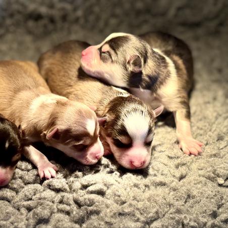 I'm Jenn W., the breeder behind Blue Water Pomskies located in Michigan. We raise our dogs with love in our home. We have high expectations for our pups and strive to pair each one with a loving family. We cherish each of our dogs and puppies, and we do everything we can to make sure that they get the best start possible. That includes everything from choosing healthy parents with good temperaments, to proper socialization and daily care, to placing them in loving homes with wonderful families.