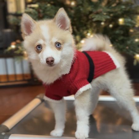 I loved my experience with Blue Water Pomskies. Since the start I felt very comfortable with Jenn, she explained to me everything I needed to know about the breed. The process was fast and easy, even though I live far in Florida; Jenn is super sweet and communicative all along the path, even months after having my baby at home we’re still in touch. Ian is a beautiful, healthy and lovely boy with such a good temper, he’s sweet and intelligent. Every time I go out with him I get asked where did I get him! People are so amazed by his looks and temper, I always hear how he’s the most gorgeous puppy they’ve ever seen. My experience was 10/10, all thanks to Jenn and her hard work. I definitely recommend Blue Water Pomskies.