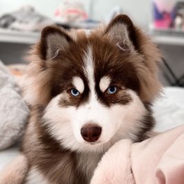 I'm the breeder behind Blue Water Pomskies located in Michigan. We raise our dogs with love in our home. We have high expectations for our pups and strive to pair each one with a loving family. We cherish each of our dogs and puppies, and we do everything we can to make sure that they get the best start possible. That includes everything from choosing healthy parents with good temperaments, to proper socialization and daily care, to placing them in loving homes with wonderful families.