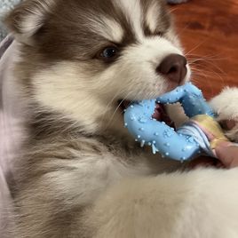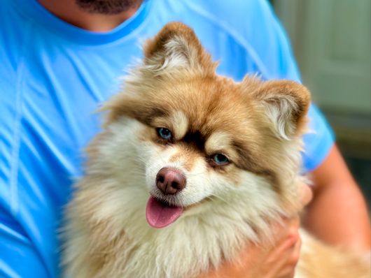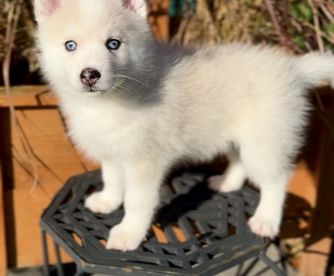 I loved my experience with Blue Water Pomskies. Since the start I felt very comfortable with Jenn, she explained to me everything I needed to know about the breed. The process was fast and easy, even though I live far in Florida; Jenn is super sweet and communicative all along the path, even months after having my baby at home we’re still in touch. Ian is a beautiful, healthy and lovely boy with such a good temper, he’s sweet and intelligent. Every time I go out with him I get asked where did I get him! People are so amazed by his looks and temper, I always hear how he’s the most gorgeous puppy they’ve ever seen. My experience was 10/10, all thanks to Jenn and her hard work. I definitely recommend Blue Water Pomskies.