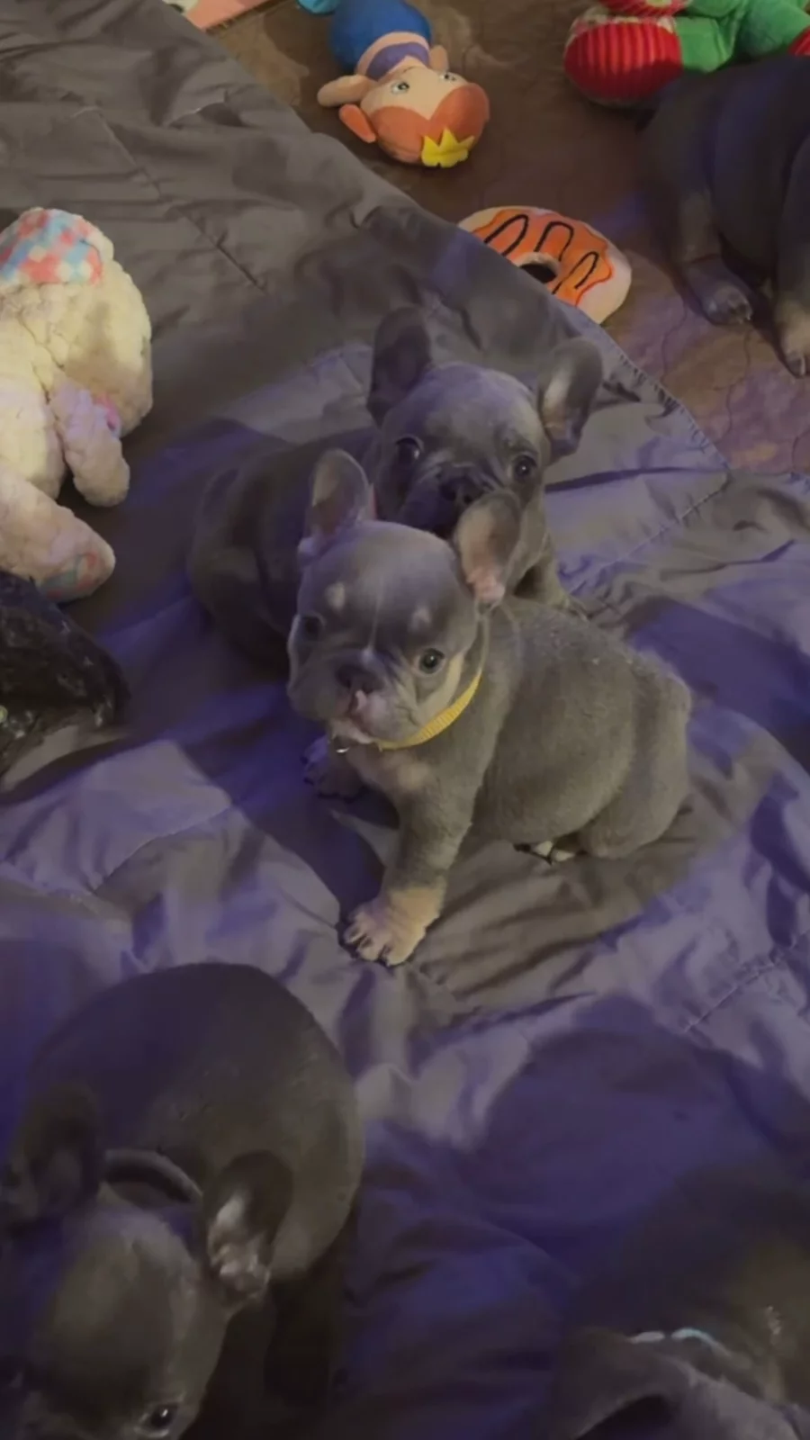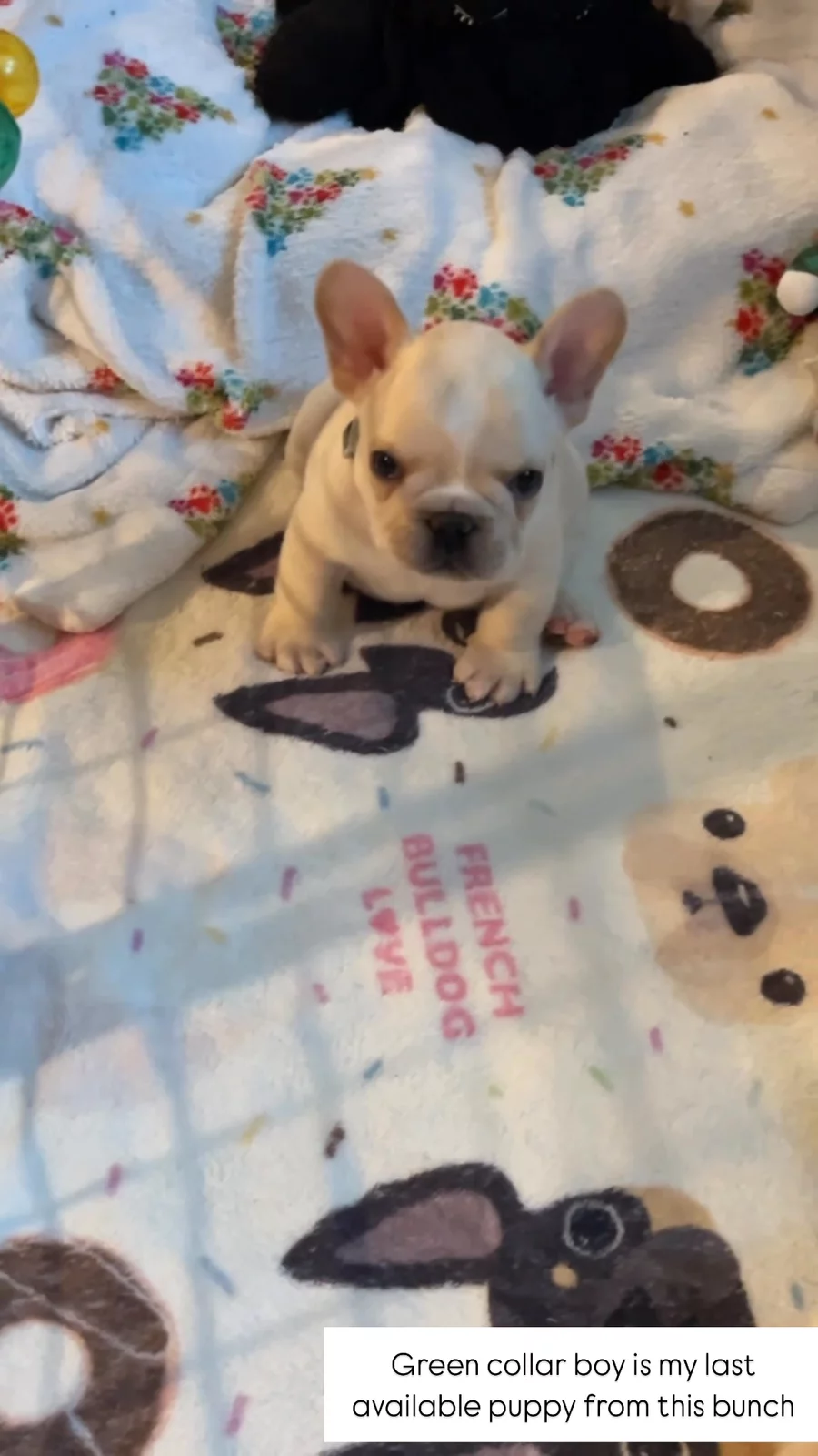 I got a puppy from Ashley of Blue Wonder Frenchies and it has been delightful working with her! My puppy, Clyde, is SO beautiful and you can tell he is VERY Hralthy. I was also lucky enough to get a very smart pup! Ashley and I both noticed how he would sit back and watch from a very young age. Ashley was available constantly with all my questions and concerns as this is my first frenchie. Clyde has tons of toys but for whatever reason he can’t get enough of this little garden trowel ( little shovel) which he twirls around like a ginsu chef on the concrete sidewalk making the most noise possible but it is quite the Show😂.