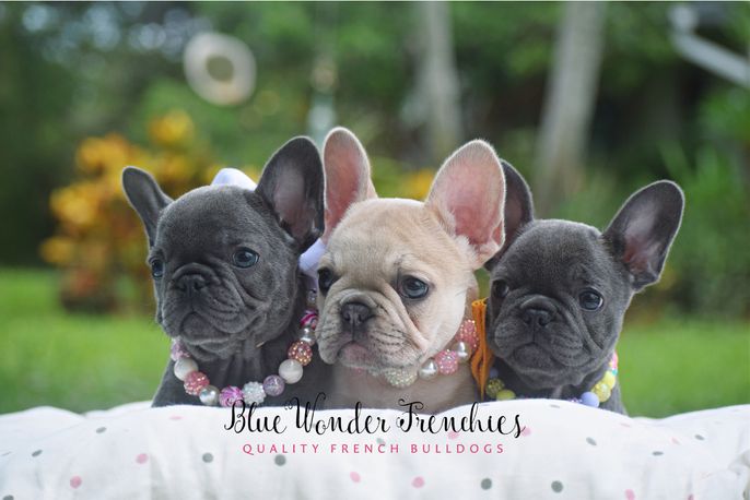 I'm Ashley M., the breeder behind Blue Wonder Frenchies located in Loxahatchee, FL. We are located just outside of sunny West Palm Beach, Florida. We specialize in AKC Registered French Bulldogs, where color meets quality. My goal is to provide structurally sound, healthy, standard and colored French Bulldogs. We are a family breeder, where our dogs are always our pets first, their happiness and health come before anything. All of our dogs and puppies live in our home, I spend almost all of my time to ensure they are happy, healthy, well fed and well socialized. We are a licensed breeder within our county. We take pride in our program and the babies we produce!