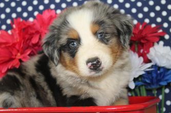 Australian Shepherd puppies include black and red. Colors will vary depending on the parent dogs.