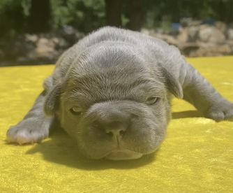 Our puppies include blue and blue fawn. Colors will vary depending on the parent dogs.