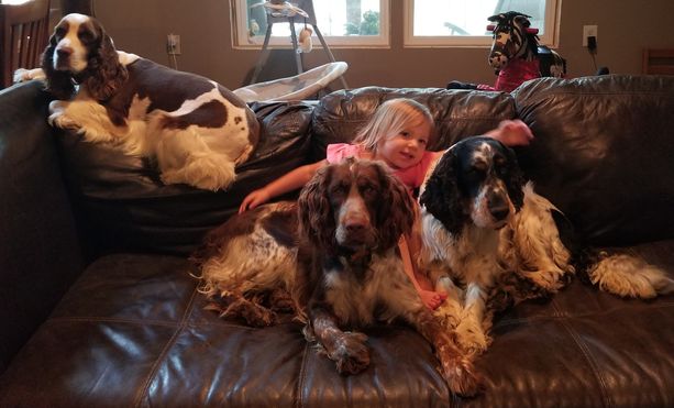 As previous Springer Spaniel owners, we love the breed and are so glad we found Bluegrass Bend. Kristy breeds the most unique and beautiful Springers, and we absolutely fell in love with this tri-color roan the minute we saw her. Kristy really cares for all her dogs! We very quickly discovered that our pup was already well socialized with other dogs and people and she absolutely loves kids all thanks to Kristy. Our puppy is now six months old, and she has developed into a very, confident, outgoing and friendly pup. She is very loving with everyone she meets, and we truly couldn’t be any happier with having her in our family.