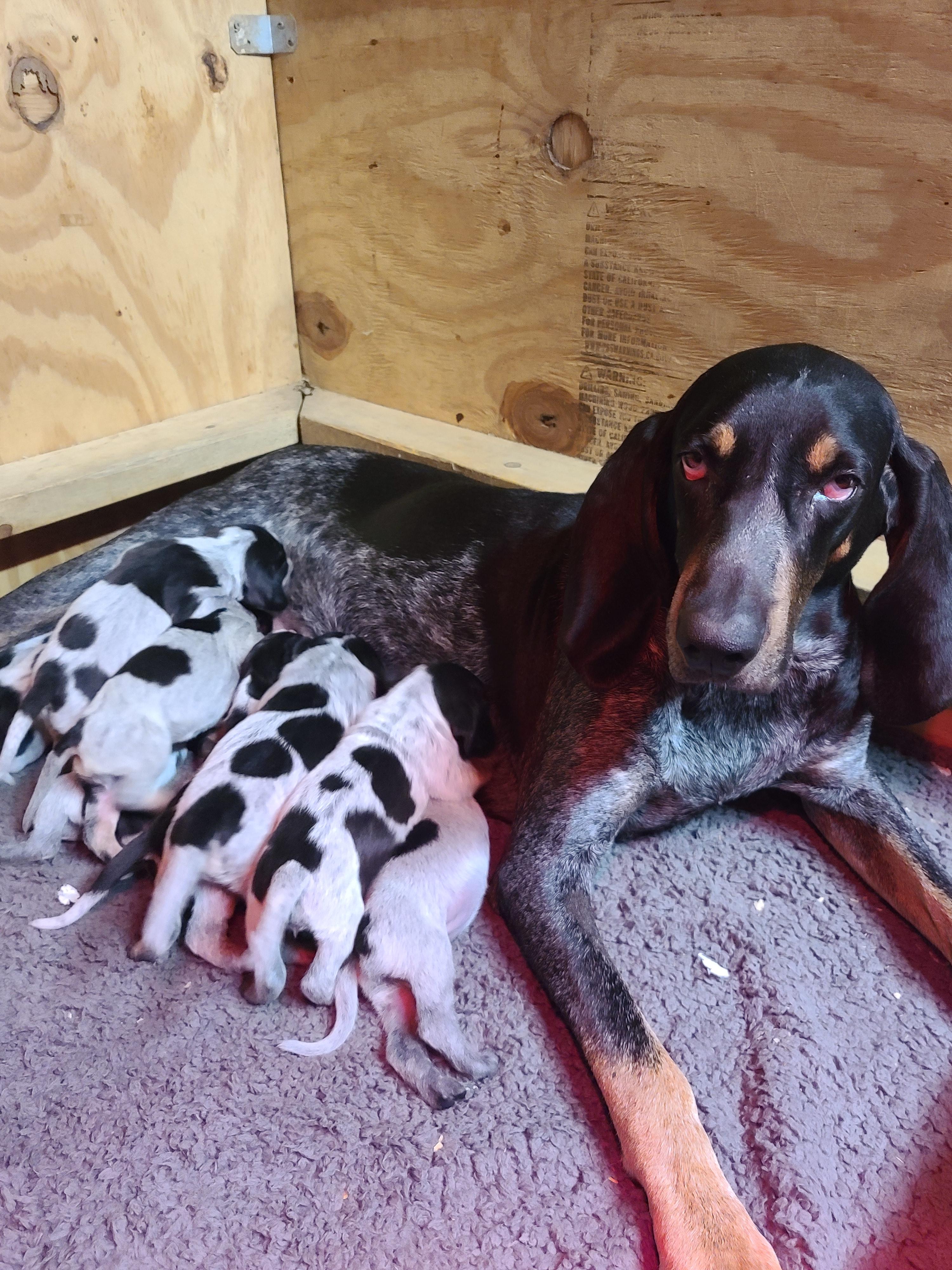 Juno is out of old blood Bluetick1 kennels stock, Rags, Jags, Raising Cain in front pedigree. Total sweetheart.