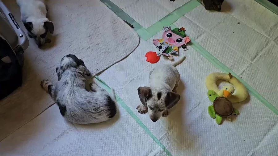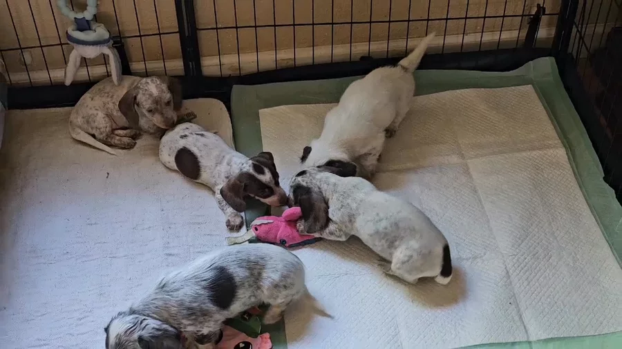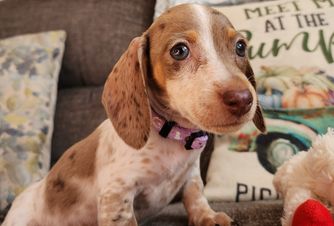 We had a great experience finding our little girl. We haven’t owned a Dachshund before and had lots of questions, which were all answered. We got weekly updates with videos and pictures. Our little Esmé is super playful, smart, picking up quickly, and great with our son. We got a little care package at pick-up, which was helpful! We took her to our vet right away and they said she was doing great! Overall an amazing experience.