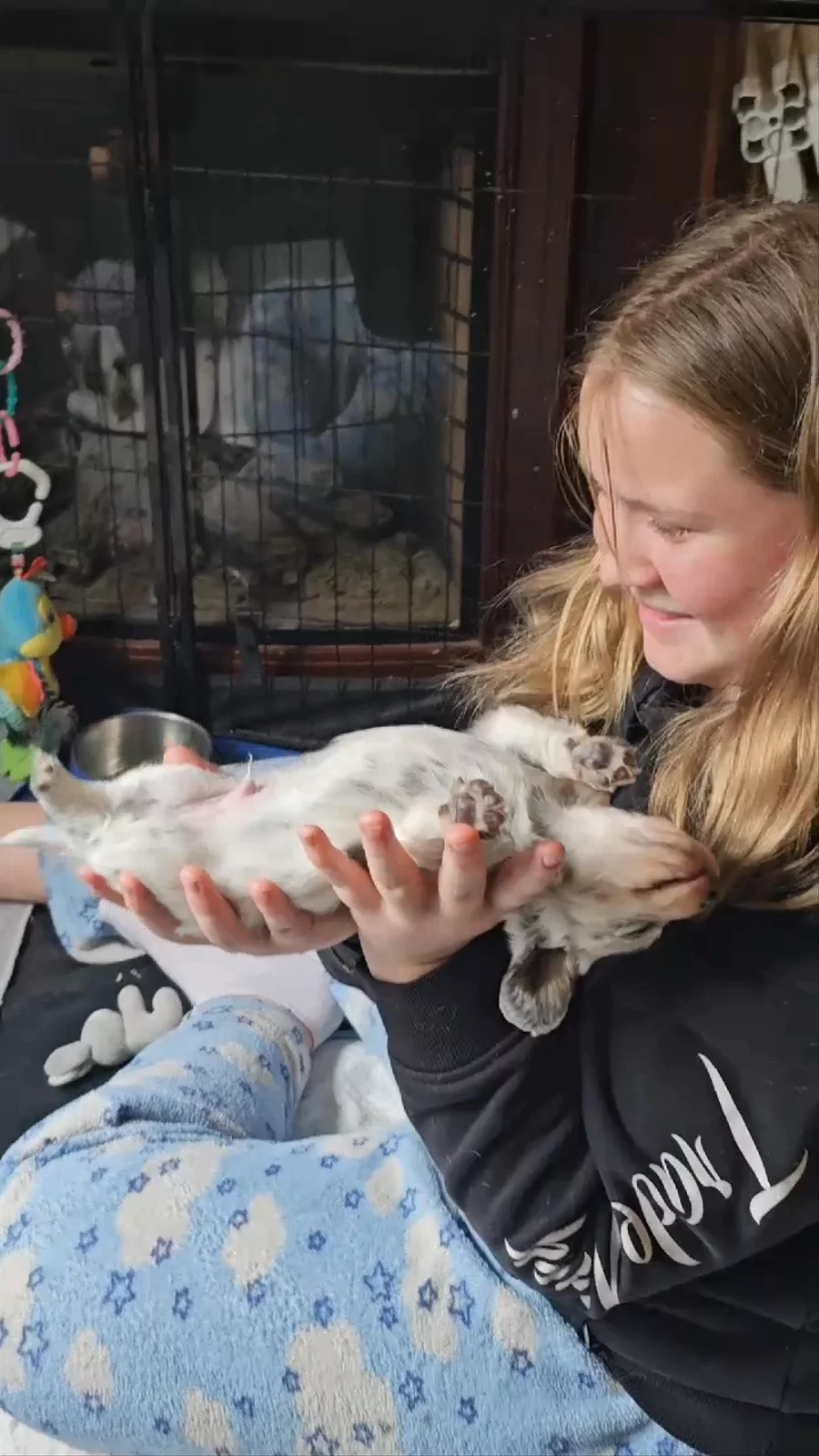 Ladybird is Birdies daughter a black and tan dapple pie smooth coated female. Shes a year old and will have her first litter sometime in 2026. Shes pra clear by parentage.