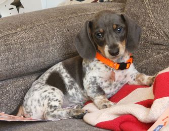 Nicole of Bluegum Dachshunds is wonderful. She answered my questions promptly and professionally. She sent us pictures or videos of our little Ziggy every week until he was old enough to come home with us! Ziggy has great temperament and personality! He is already part of the family after just this short time. He is healthy and smart! They bring the puppies up with their family so they are comfortable in the house and with people right out the gate. Great dog! Great experience, I highly recommend this breeder.