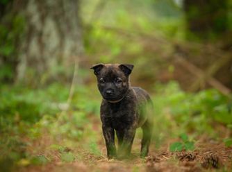 Our puppies are gold brindle. Colors will vary depending on the parent dogs.