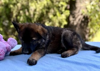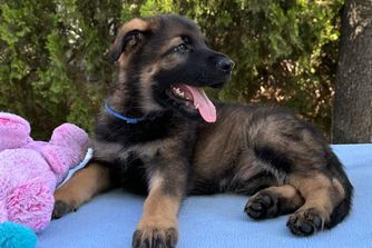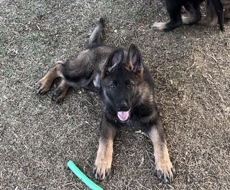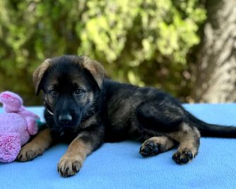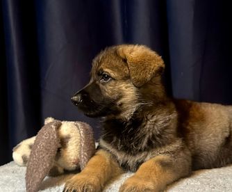 German Shepherd puppies have stock coats. Coat types may vary depending on the parent dogs.