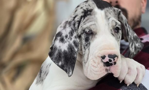 Larissa is not just an amazing breeder, she is also a valuable source and a wonderful human. Luca is not my first giant breed puppy, but he is my first Great Dane. Larissa is always so responsive and helpful with any questions I have and she is so knowledgeable about her puppies. Her suggestions have proven invaluable. And my Luca is the sweetest, most gentle puppy I have ever had. His temperament is perfect, he is going to be trained to be a therapy dog. I can not say enough good things about Larissa or recommend her enough. Luca is now almost six months old and Larissa is still just as invested in Luca.