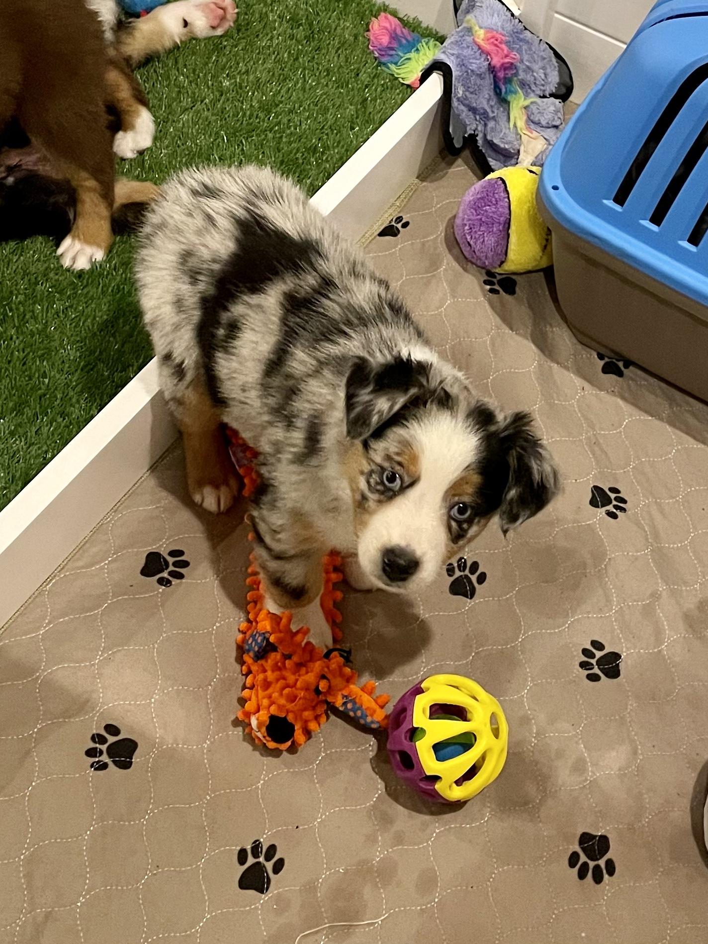 I would not hesitate to purchase another pup from Brenda. Stormi is such a joy to have here. Being a breeder I am picky about my future pups and Brenda has exceeded my expectations with this girl. She is very confident, adjusted well in her crate, and is doing well with her potty training. The time and effort Brenda puts into the pups she raises really shows. If you are on the fence about a pup from BlueZion, don't be, you will not be disappointed!