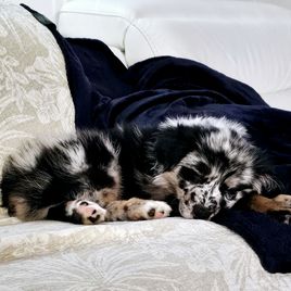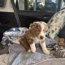 We had an absolutely amazing experience with Bluff View Aussies! Destiny was wonderful to work with — she answered all of our questions, sent us regular photo updates, and was super flexible to make our long drive work for pickup. We recently brought home our boy Mylo, and he’s been an absolute joy! He’s smart, clean, and already lets us know when he needs to go outside. He gets along beautifully with our other dog, Finley, and has quickly become part of our family. We couldn’t be happier and highly recommend Destiny and Bluff View Aussies to anyone looking for a loving, well-raised Australian Shepherd! 🐾💛