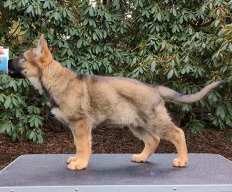 I'm very fortunate to own a GSD who is a true representation of the utilitarian breed and so many people have expressed how much they love the stable temperament and drive that he has. I decided to help improve the breed by producing more dogs who are true representations of the breed like he is. Breeding for workability, stability, temperament, structure, and health is most important to me.