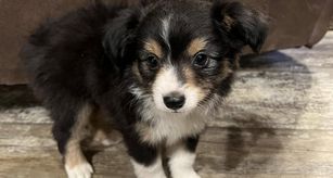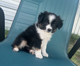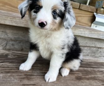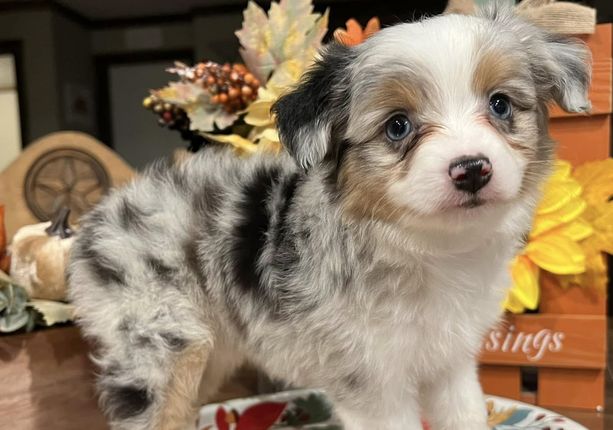 Our puppies include black tri, blue merle, red merle, and red tri. Colors will vary depending on the parent dogs.