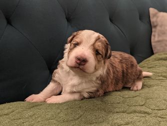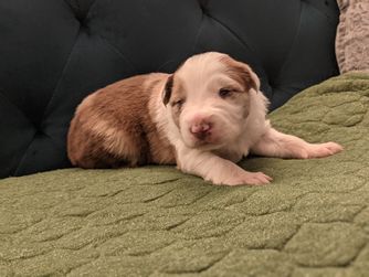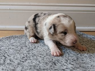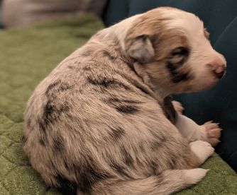 Our puppies include red merle, brindle, gold, sable, sable merle, saddleback sable, white and red, and white and gold. Colors will vary depending on the parent dogs.