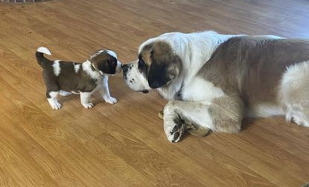 Bonnie is a female Saint Bernard. Carefully selected as a great representative of her breed, Cheryle decided to make her part of their program. Cheryle has passed Good Dog’s screening process, which involved a review of their breeding practices, environment, and the mental and physical health of their dogs.