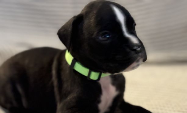 Ryder is a male Boxer. Carefully selected as a great representative of his breed, Trish decided to make him part of their program. Trish has passed Good Dog’s screening process, which involved a review of their breeding practices, environment, and the mental and physical health of their dogs.