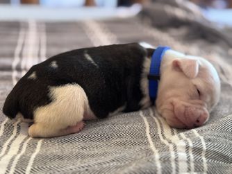 Penny is the baby of our adult dogs. She’s petite, and super fast. We called her our little Corvette. She is by far the sweetest Boxer we have. She doesn’t disobey, she loves to cuddle, and her favorite thing to do is steal mom’s puffy vests and hide them in her bed to use as pillows.