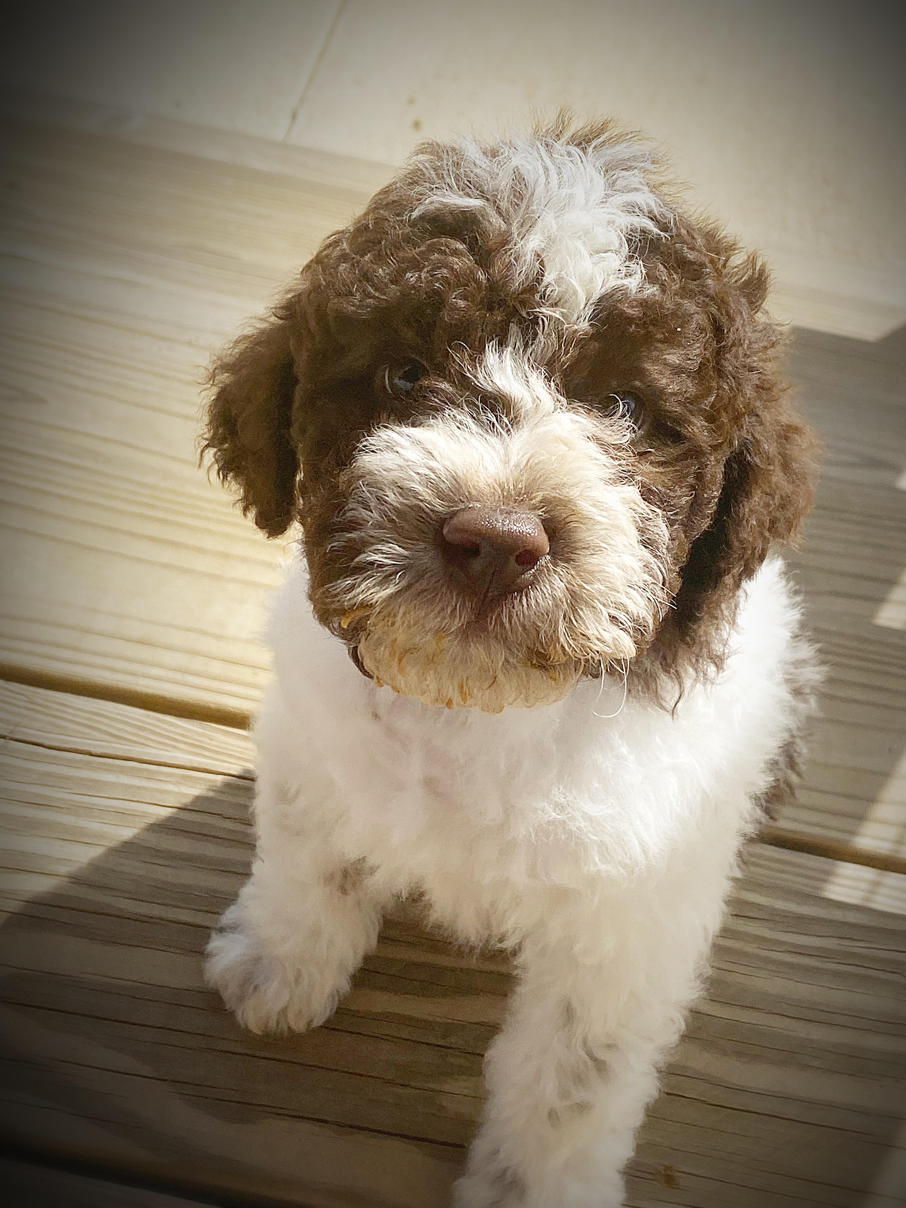 Caprice is a female Lagotto Romagnolo. Carefully selected as a great representative of her breed, Kendal decided to make her part of their program. Kendal has passed Good Dog’s screening process, which involved a review of their breeding practices, environment, and the mental and physical health of their dogs.